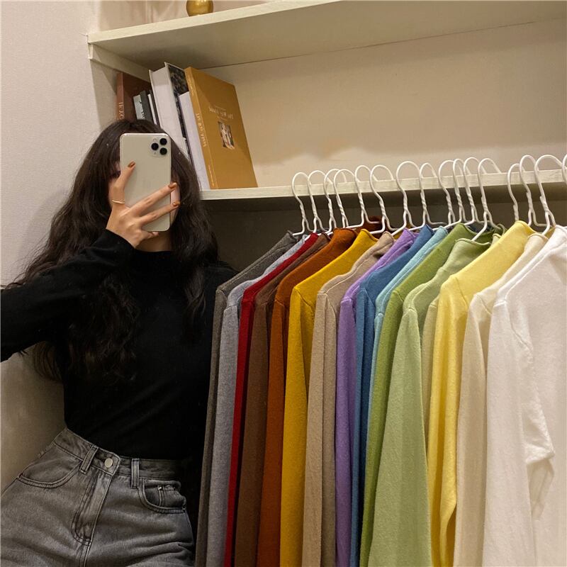 2021 最新作 ハーフハイネックボトミングシャツ春ウエスタンスタイル長袖セーター女性2021年春新しい無地ワイルドセータートップ ロング スプリング 春物 ソリッドカラー 0161398951766