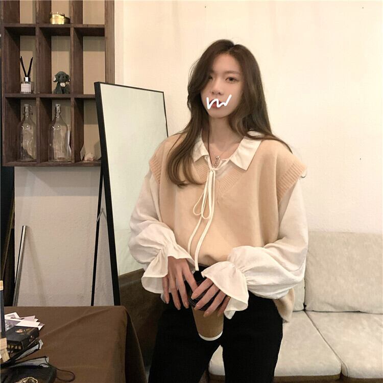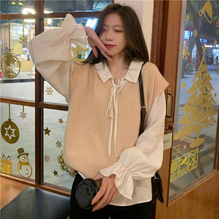2021 最新作 レトロセーターベスト編みアウターウェアトレンドファッションスタッキングシャツベストツーピースレディース2021新トレンド 0135615339741