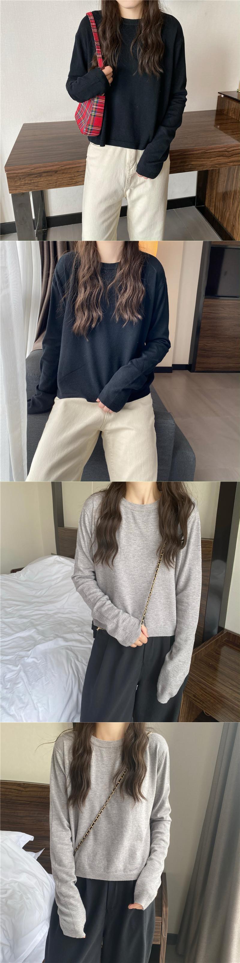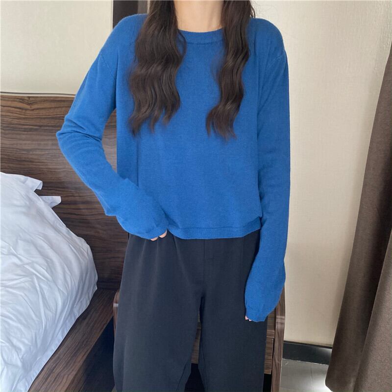 2021 最新作 2021年春の新しいラウンドネックプルオーバー長袖ニットトップレディースショートルーズで薄いインナーベースシャツ ロング スプリング 春物 Oネック 0127738857145