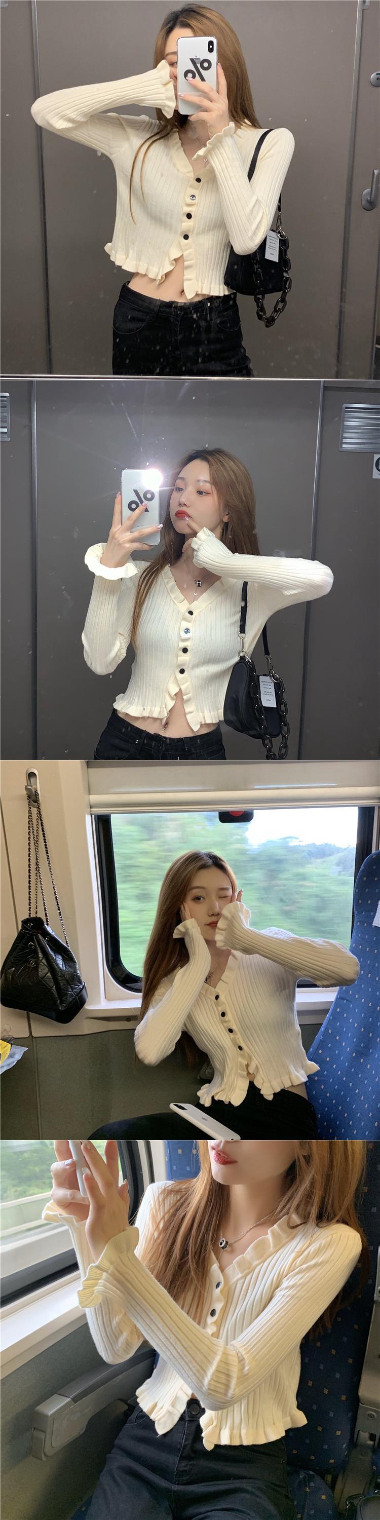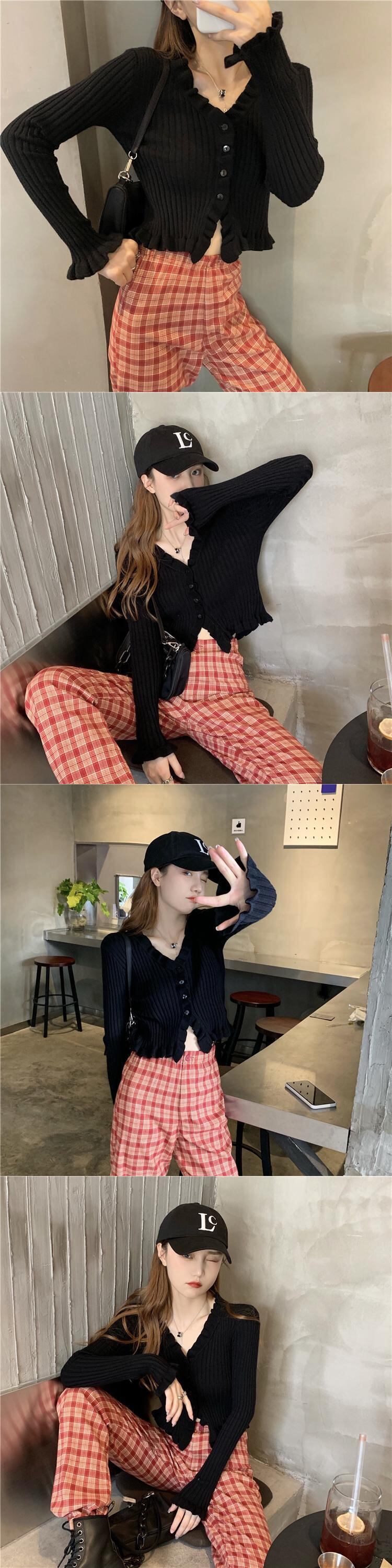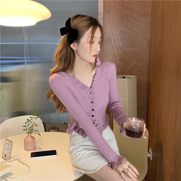 2021 最新作 2021年春秋新作スリムスリミングVネック長袖ニットカーディガン、キクラゲとクロップドショートトップの女性 ロング スプリング 春物 オータム 秋物 0112670180234
