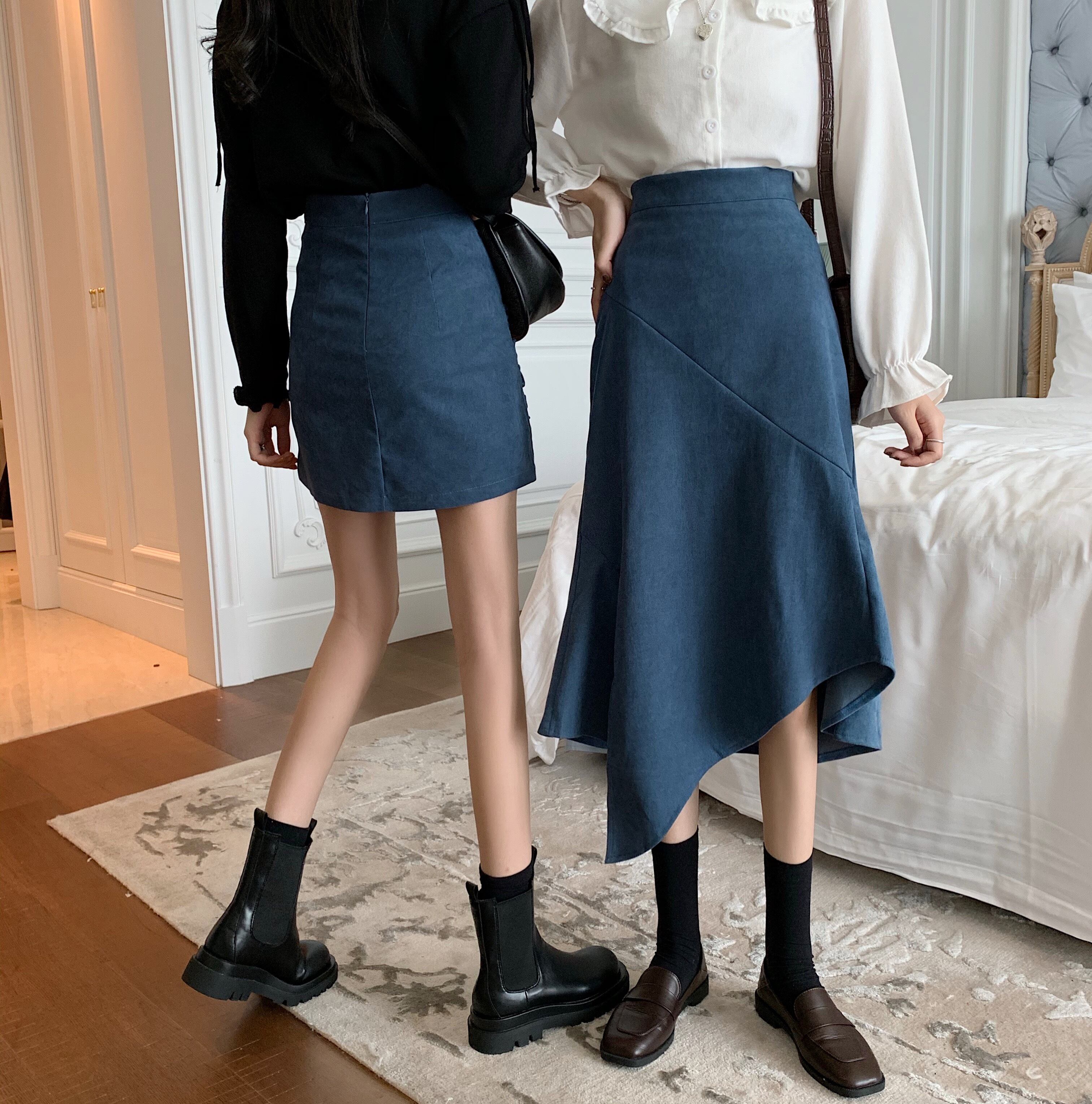 2021 最新作 ヘイズブルーブラックハーフレングススカートメス春ハイウエストスモールイレギュラーデザインセンスAラインショートスカートバッグヒップスカート ハイウェスト スプリング 春物 0163385276156