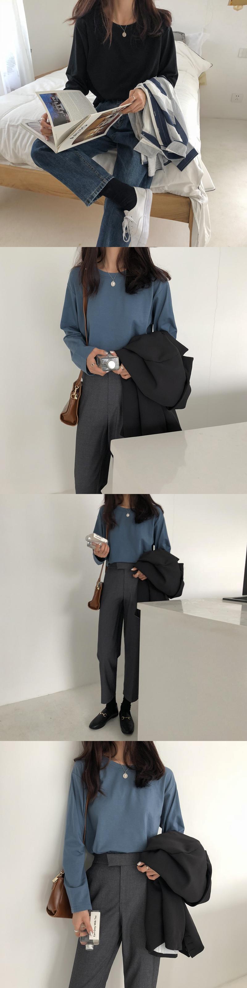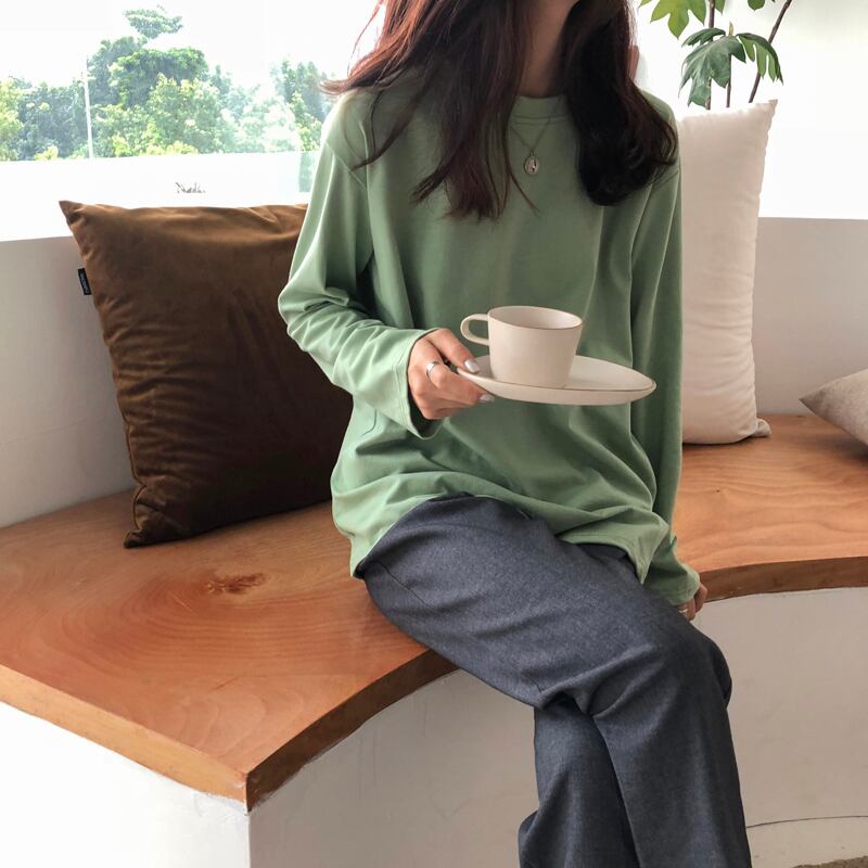 2021 最新作 ラウンドネック長袖Tシャツ初秋女性2021年新作ワイルドルーズで薄い無地インナーベースシャツトップスチューデント ロング オータム 秋物 Oネック ソリッドカラー 0120638673068