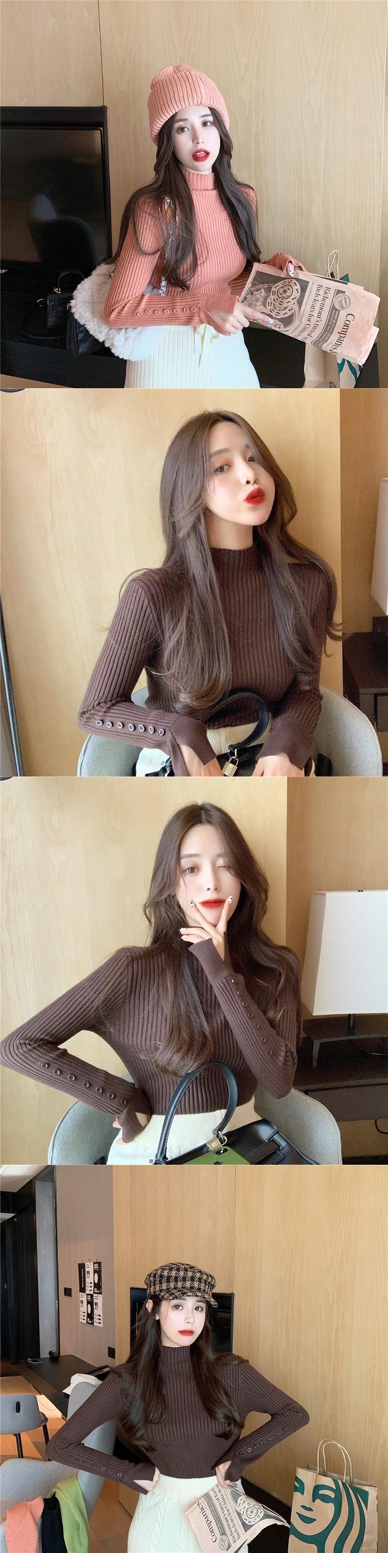 2021 最新作 デザイン感のあるネットセレブウエスタンハーフタートルネックセーターニットボトミングシャツレディース春新作ワイルドスリムトップス スプリング 春物 011149313076