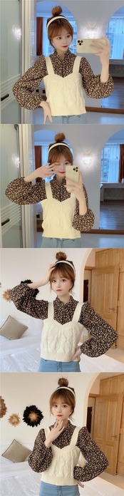 2021 最新作 リトルマンフローラルボトミングシャツニットベストベスト春ファッションスーツ女性2021新しいツーピーススーツ スプリング 春物 花柄 0161917293036