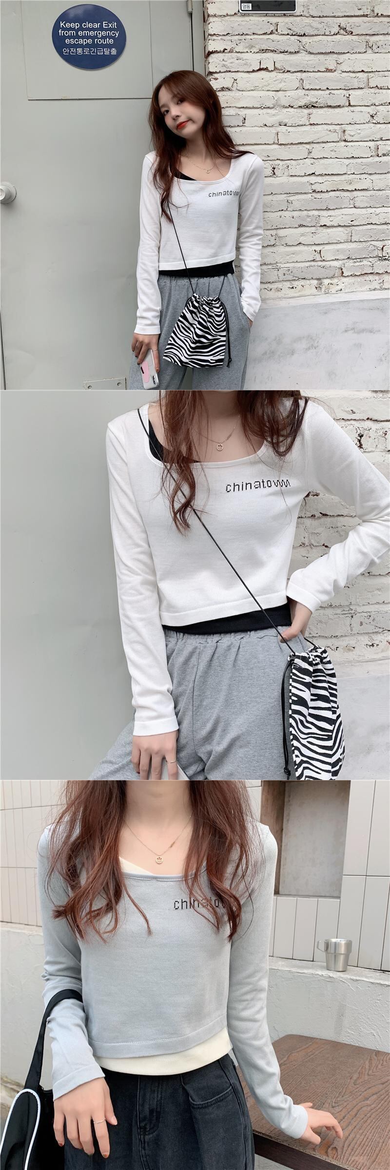 2021 最新作 学生はツーピースの長袖ショートトップ、女性のデザインセンス、ニッチ、ワイルド、スリム、シン、ベース、Tシャツのトレンドを偽造します ロング 0152128918335 | deco2