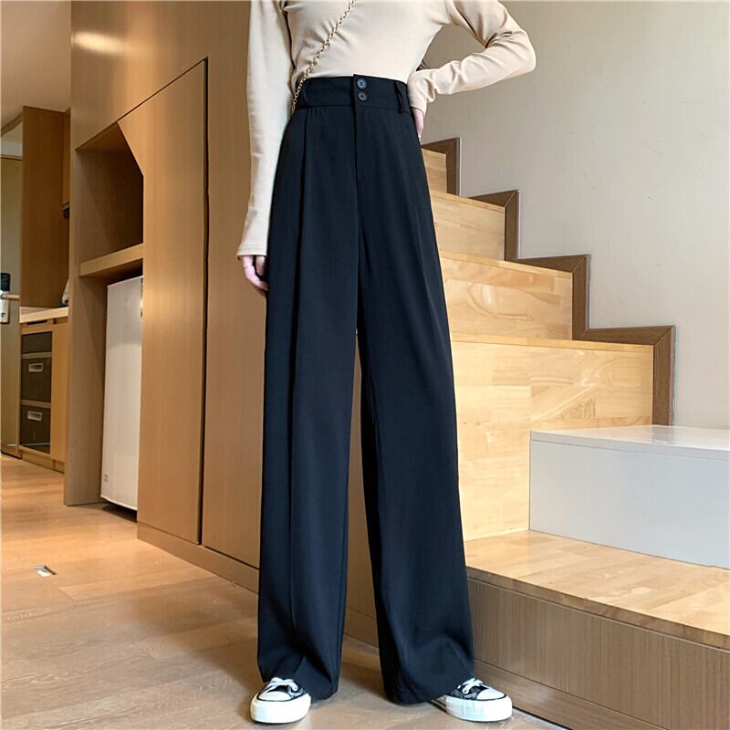 2021 最新作 薄い黒のズボンのバージョン女性2021年春と秋ルーズストレートドレープハイウエストワイドレッグパンツモップパンツ ハイウェスト ブラック スプリング 春物 オータム 秋物 ワイドパンツ 0183756265596