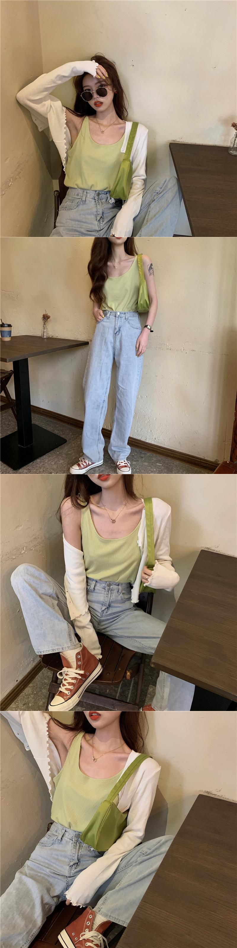 2021 最新作 夏の薄いインナーにアイスシルクの小さなキャミソール、女性のアウターにインスーパーファイアノースリーブニットボトミングショートトップ サマー 夏物 0111139781038