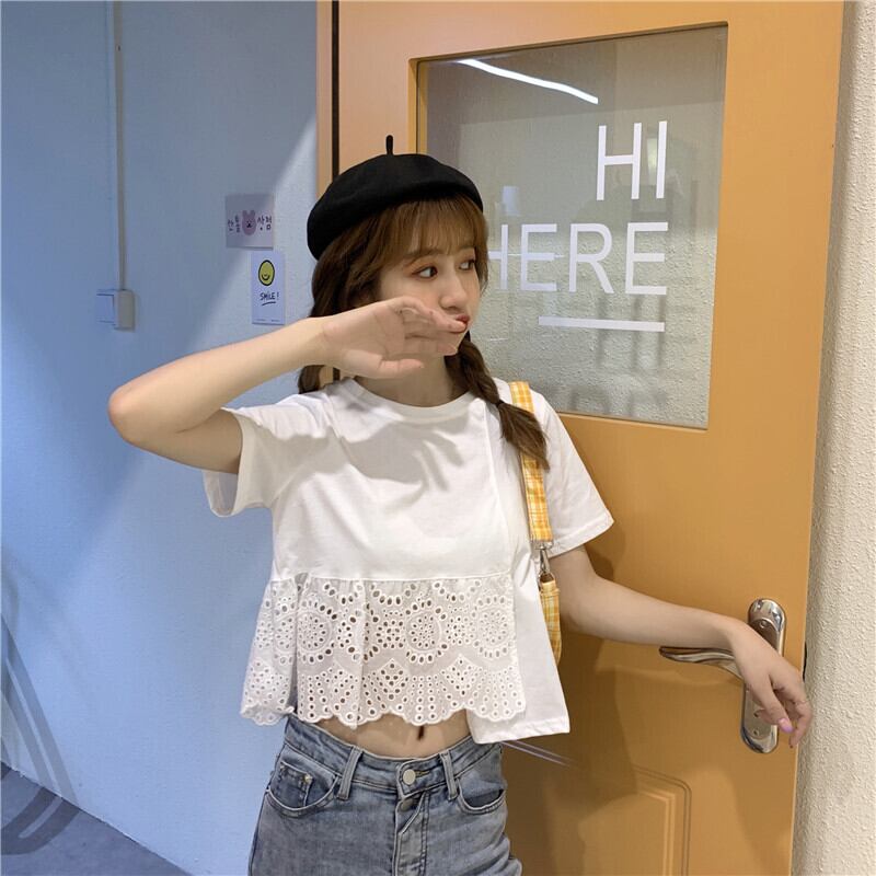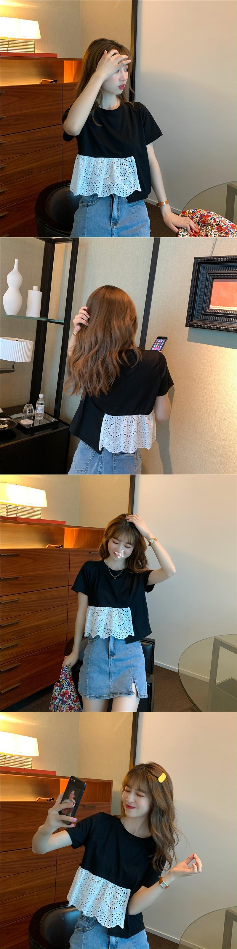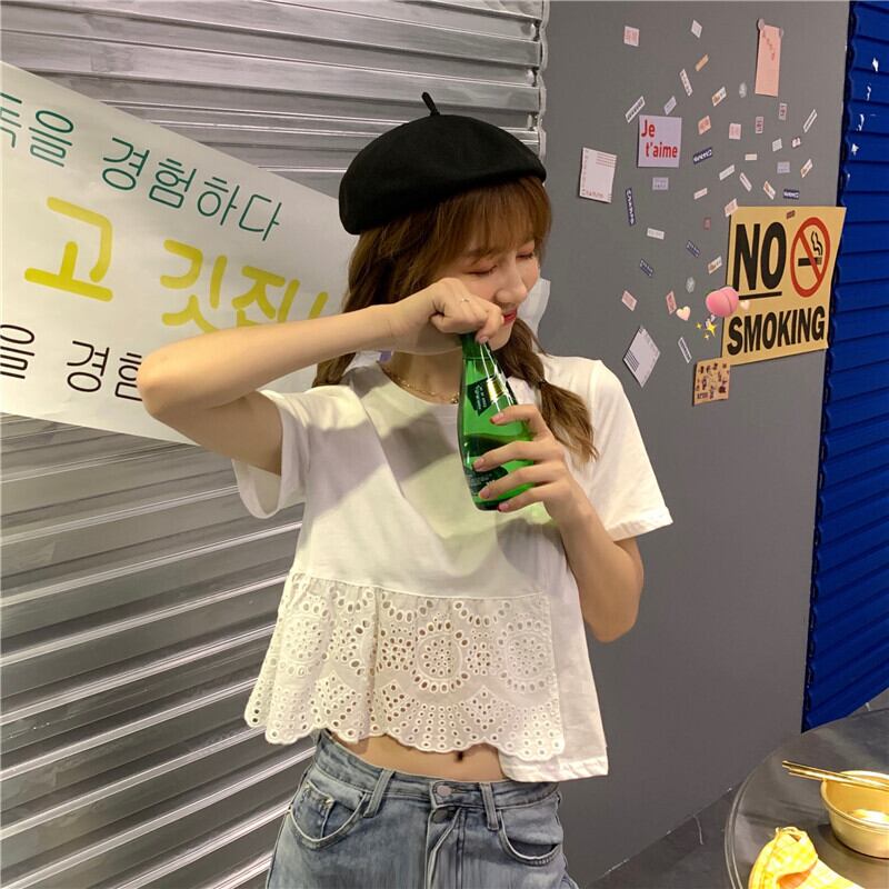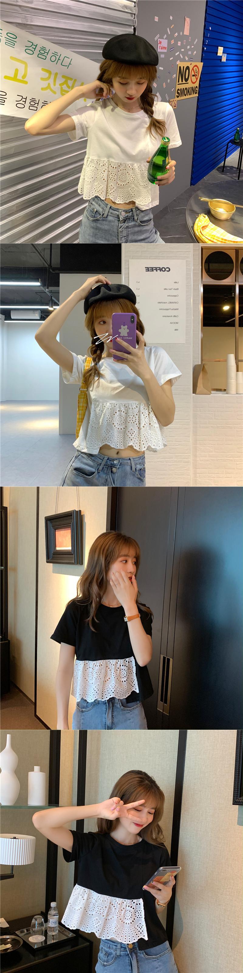 2021 最新作 半袖ステッチTシャツレディースタイドイン夏注意マシンデザインセンス中空不規則ショートトップハイウエストパンツ ハイウェスト サマー 夏物 0158405760029