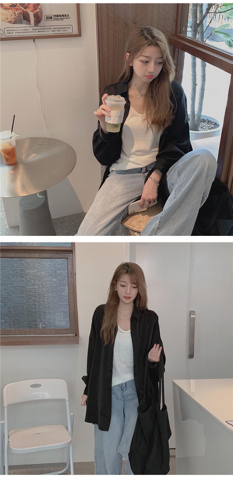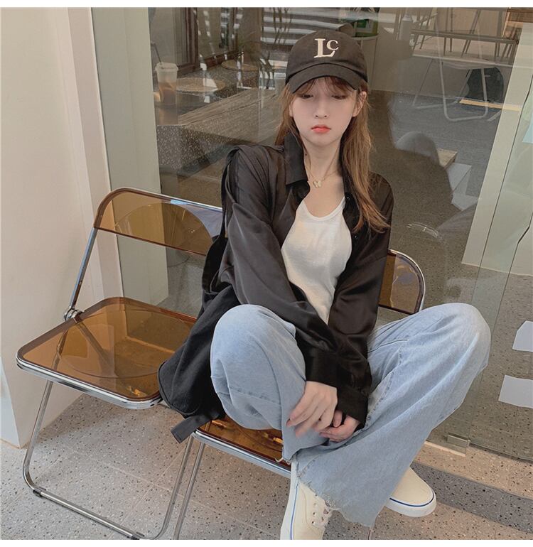 2021 最新作 2021年春夏新スタイルシックトップデザインニッチセンスドレープブルーサテンシャツ女性ルーズで怠惰なスタイル スプリング 春物 サマー 夏物 0119813698292