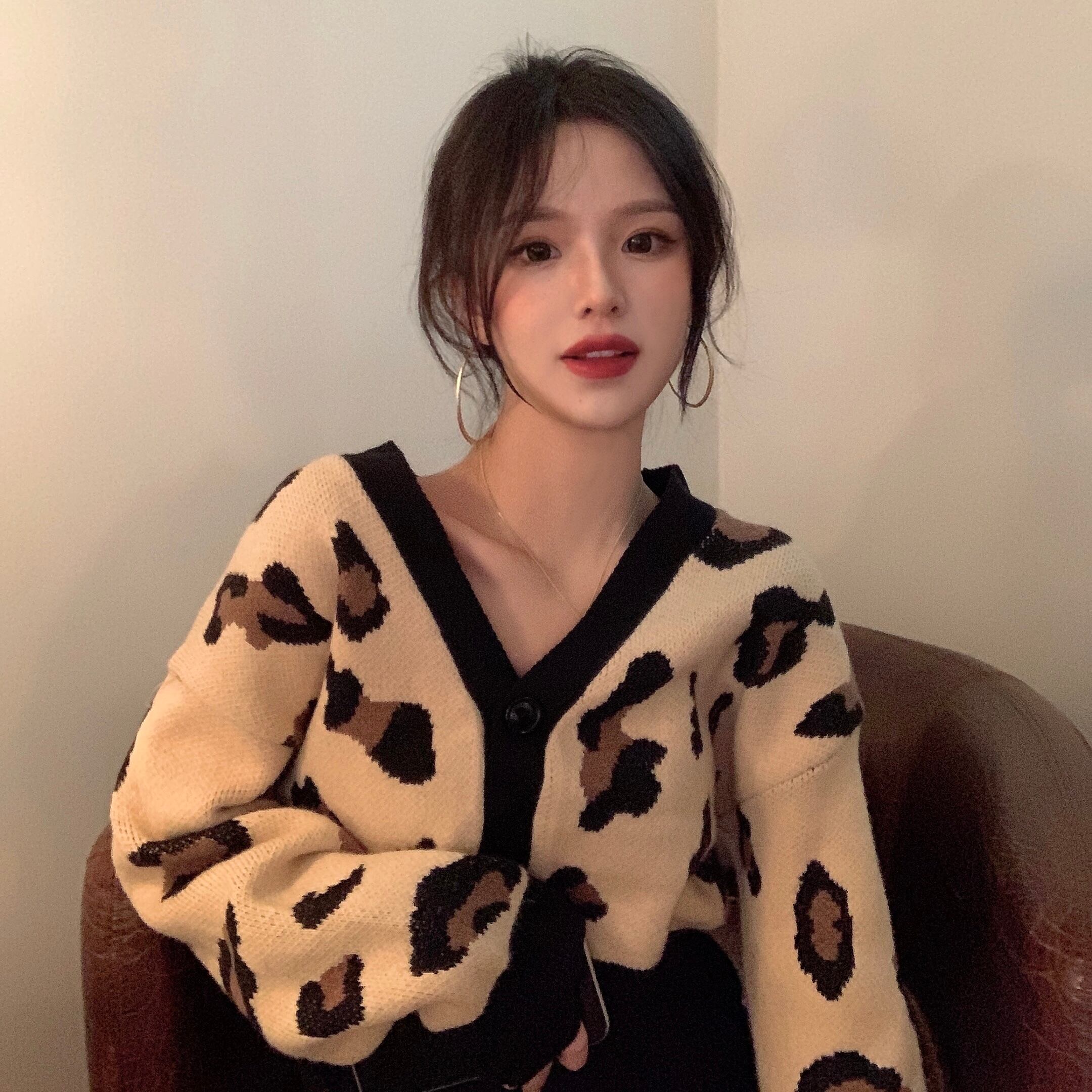 2021 最新作 長袖Vネックセーターコートレディースカーディガンヒョウ斑点セーター新しい2021年春ショートトップ ロング スプリング 春物 016964093999