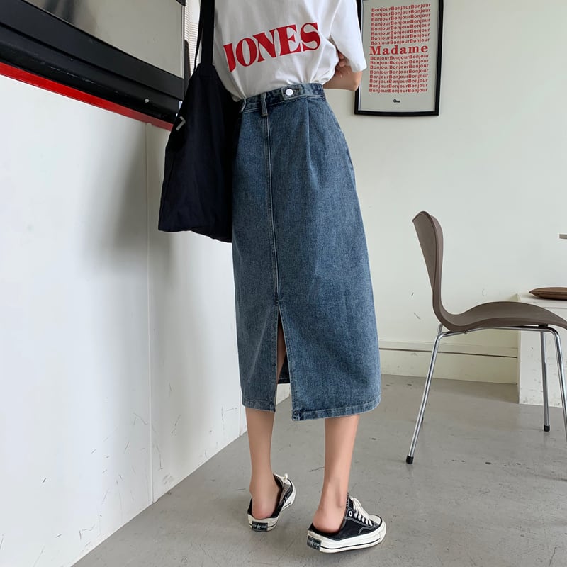 2021 最新作 ハーフレングススカート女性2021年夏新作ハイウエストaラインレトロ香港スタイル学生ミドル丈スプリットデニムスカート ハイウェスト サマー 夏物 0162737695169 | deco2