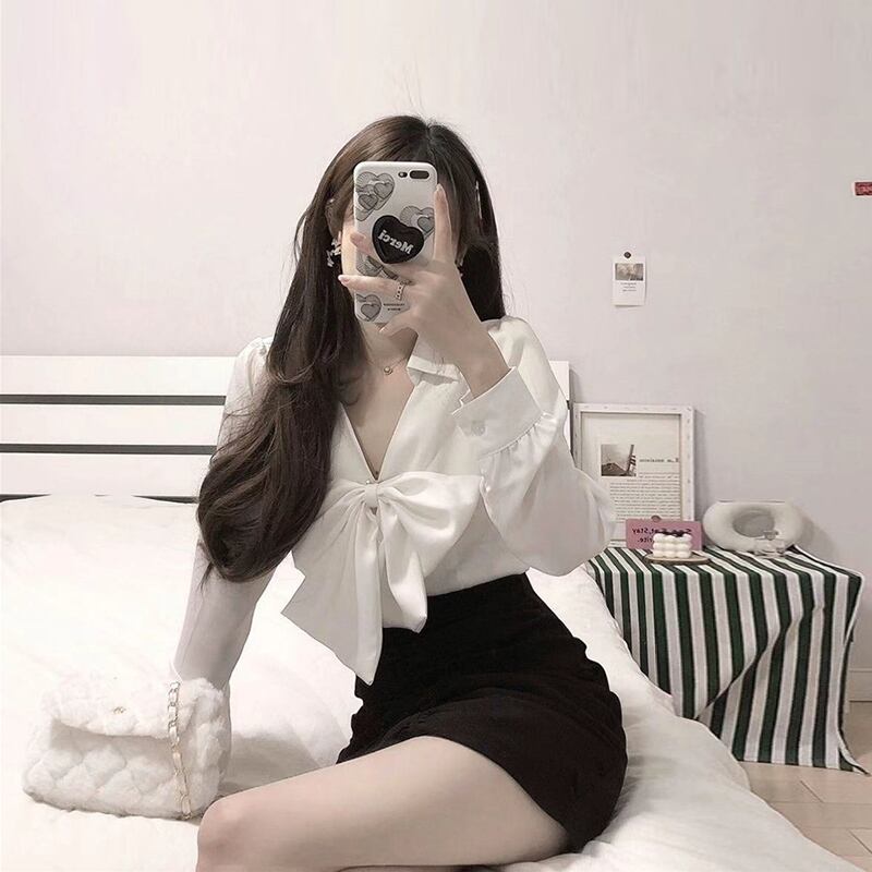 2021 最新作 フランスのニッチな蝶ネクタイシャツスカートデートスーツ女性女性気質ツーピース春2021新しい リボン スプリング 春物 0152968703590