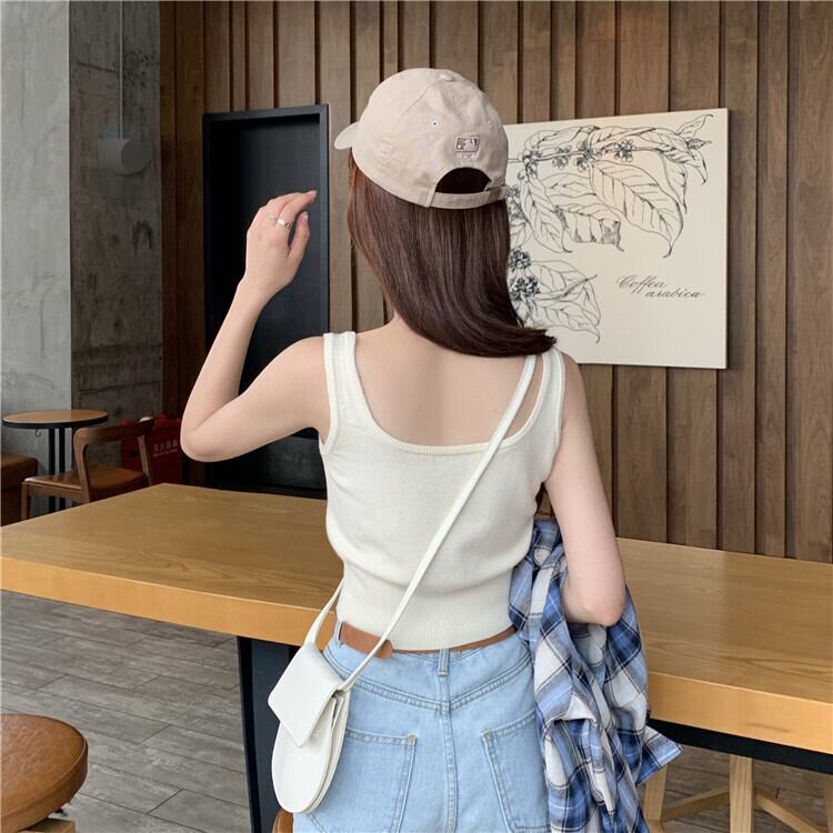 2021 最新作 香港風味の小さなキャミソール、婦人服、ボトミング、スポーツアイスシルクニット、ウエストショートトップ レッド 0193683035853