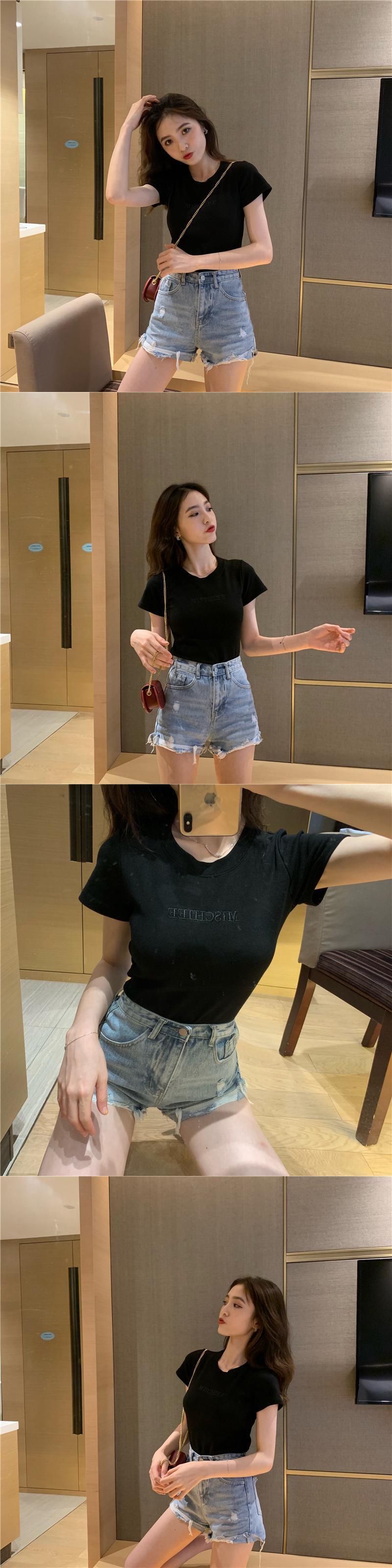 2021 最新作 起毛半袖Tシャツ女性2021年新イントレンディスリムボトミングシャツセクシートップショート女性ヒョナスタイル 017209218150