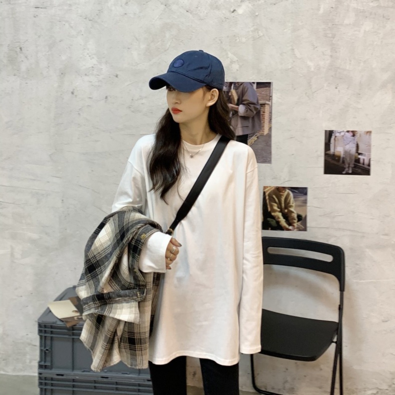 2021 最新作 ロングホワイトTシャツウィメンズソルトウィメンズイーズスタイルトップス、ロングインナー、カバーppボトミング、ルーズミドル丈、両面 0129533714910