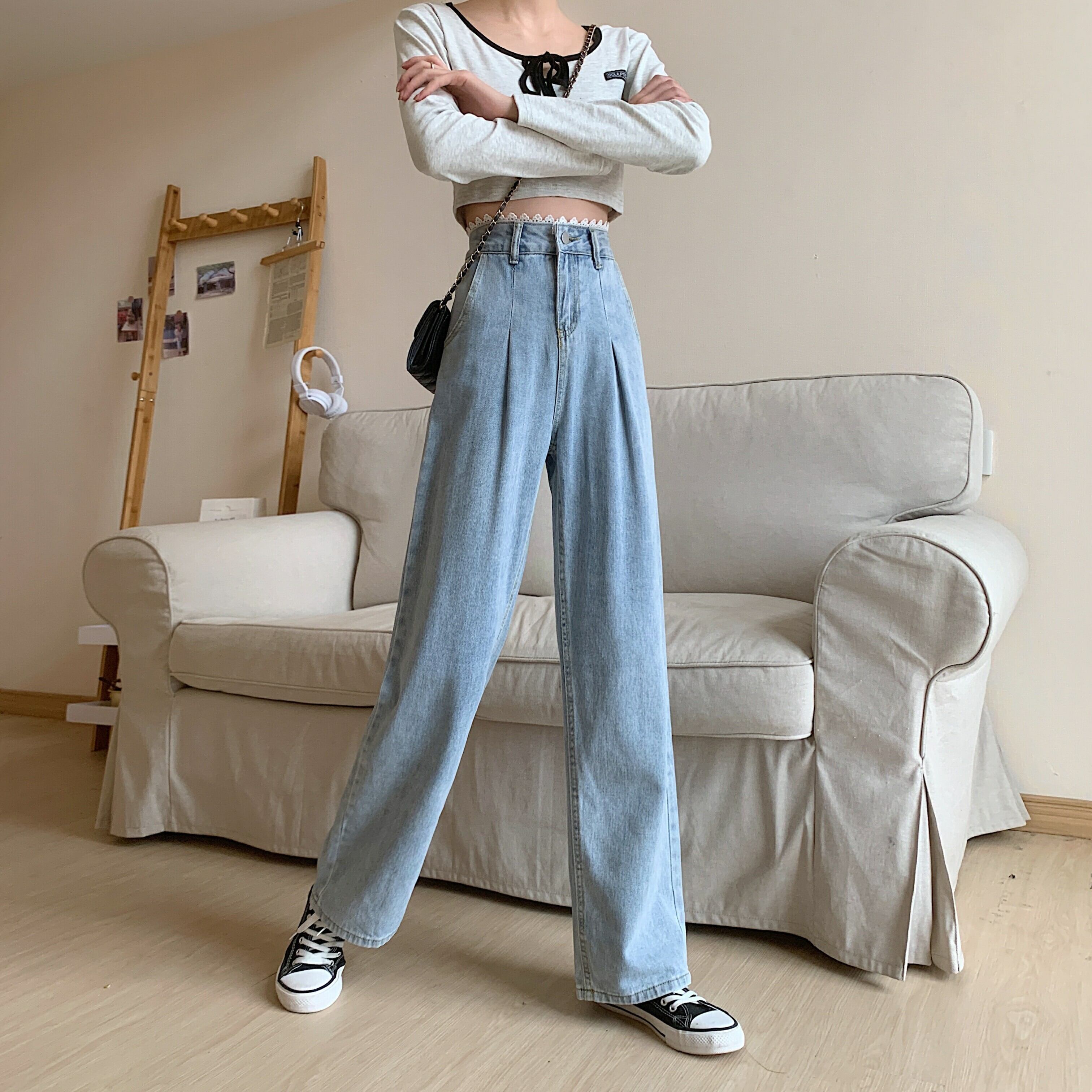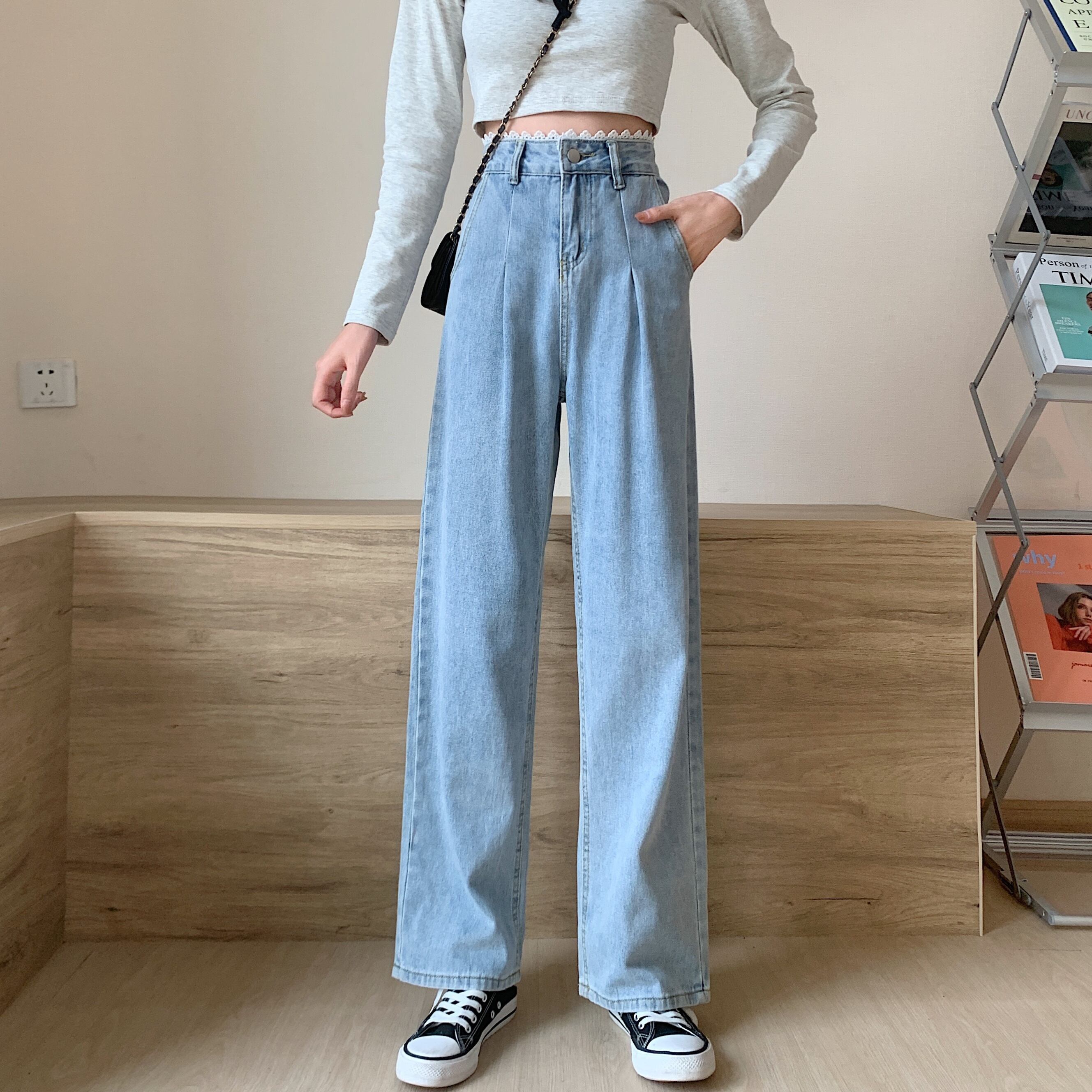 2021 最新作 2021年春秋新作ネットレッドレディースレースジーンズストレートシックハイウエストルーズ9点ワイドレッグパンツトレンド ハイウェスト スプリング 春物 オータム 秋物 0140920469527