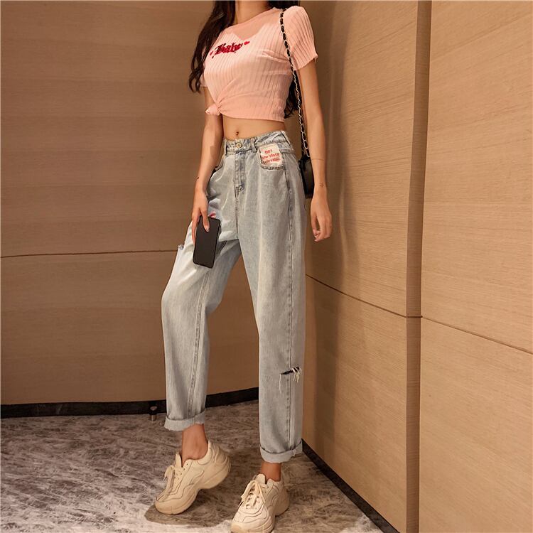 2021 最新作 シックな破れた明るい色のジーンズのバージョン2021年春の新しいスタイルの薄いルーズストレートワイドレッグパパパンツ レッド スプリング 春物 0140134866560 | deco2