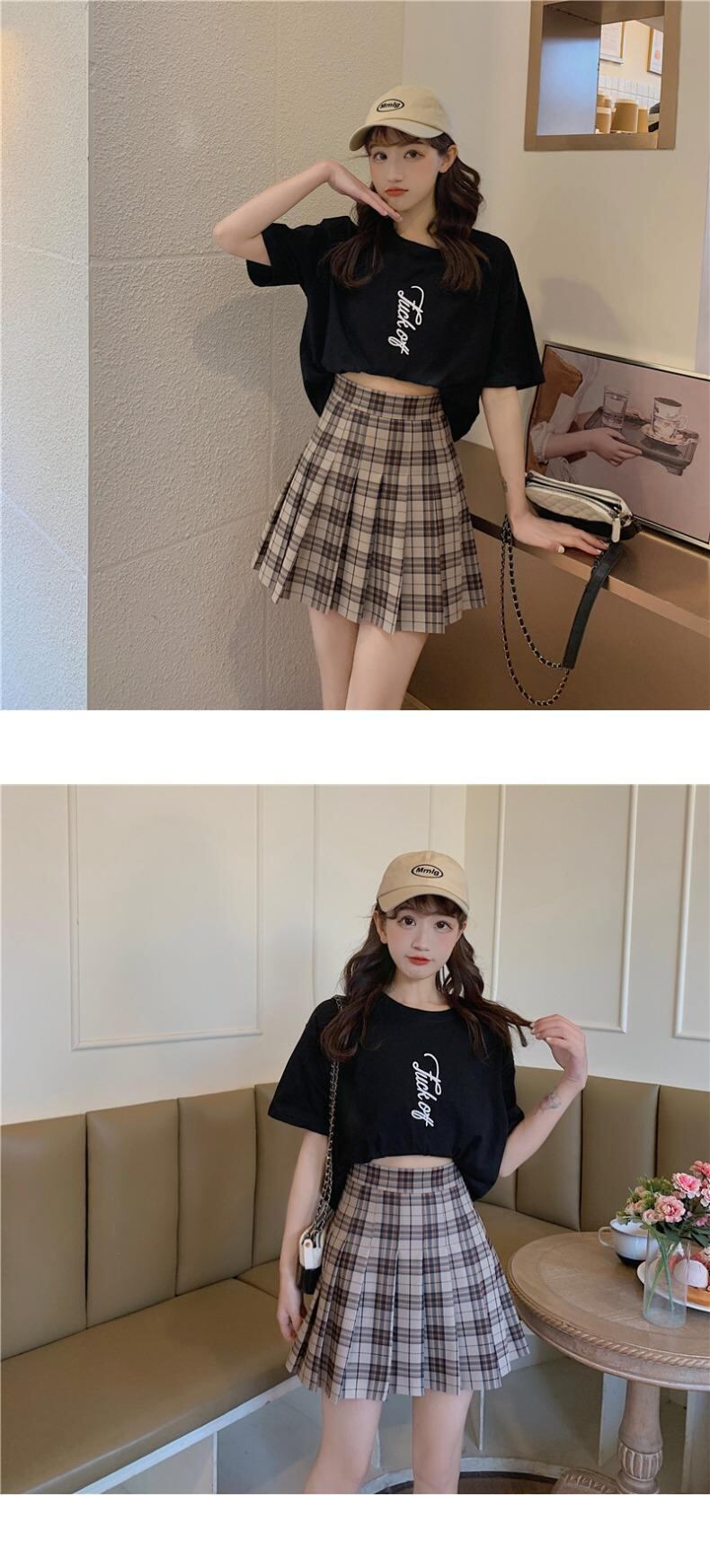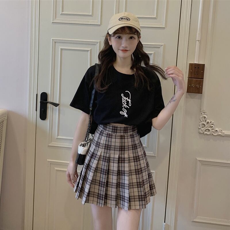 2021 最新作 eseミルクティーチェック柄プリーツスカート、ハイウエスト、細いAラインスカート、春夏女性オールマッチ小学生 ハイウェスト スプリング 春物 サマー 夏物 0151027246706