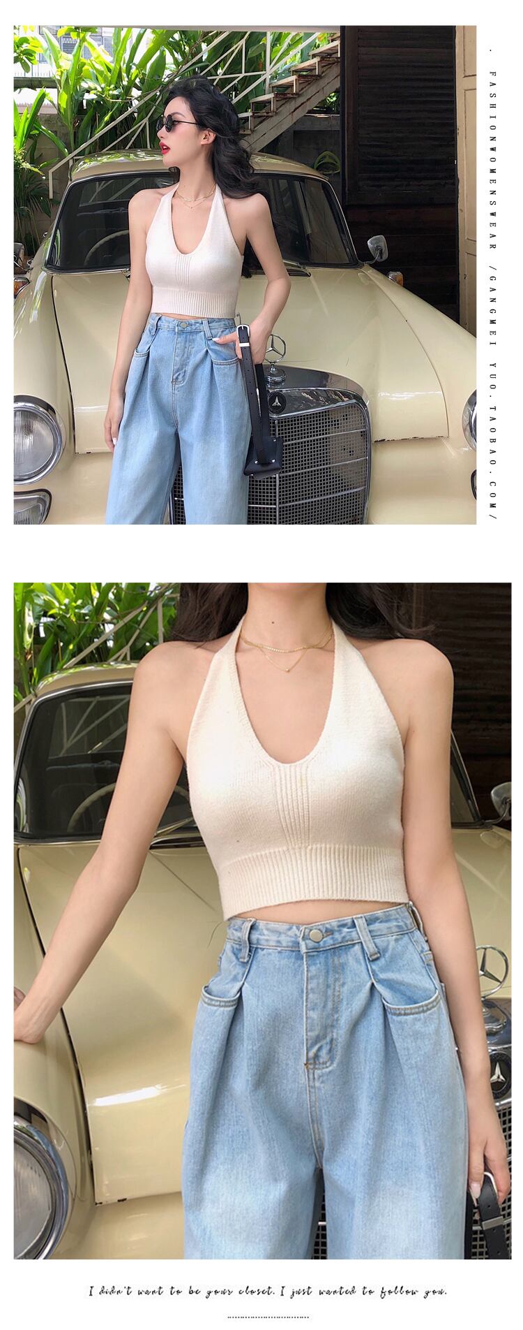 2021 最新作 シックなレトロな香港スタイルのセクシーなノースリーブホルターネックサスペンダーブラウスレディースサマーショートスタイルインナーウェアデザインベストアウターウェア 夏物 0151153511275