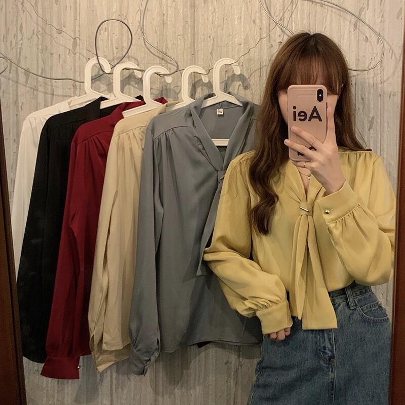2021 最新作 2021年春の女性用ブラウス、女性のデザインセンスのニッチ、スーパーフェアリーとウエスタンスタイル、ワイルドフレンチボウタイ長袖トップ ロング リボン スプリング 春物 0163467935206
