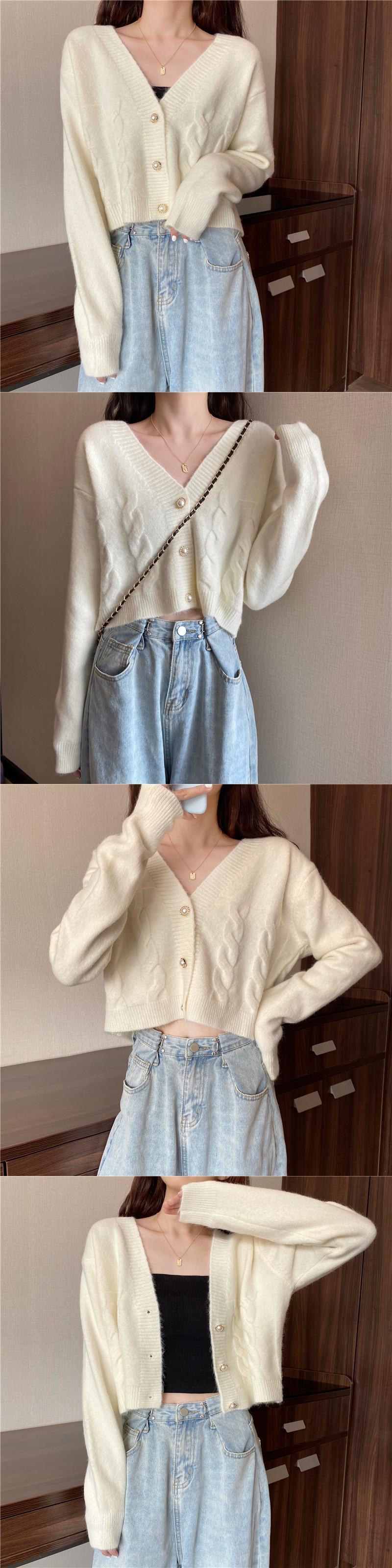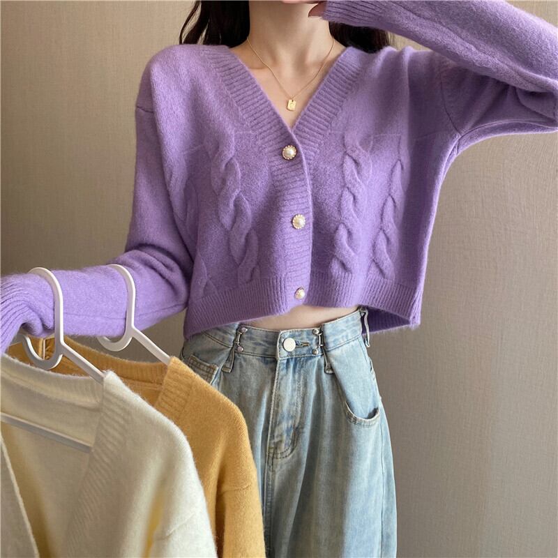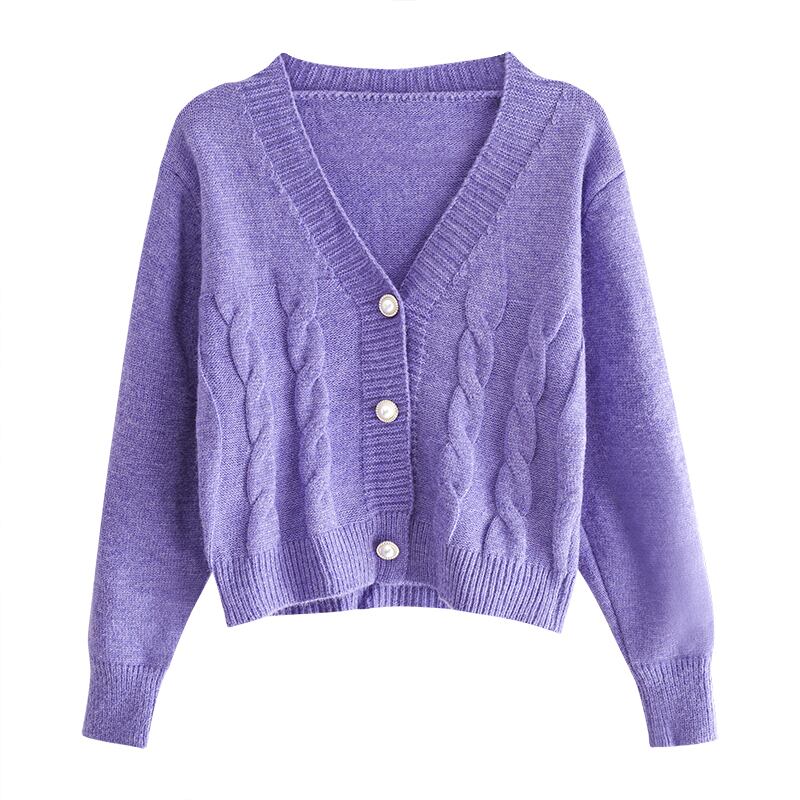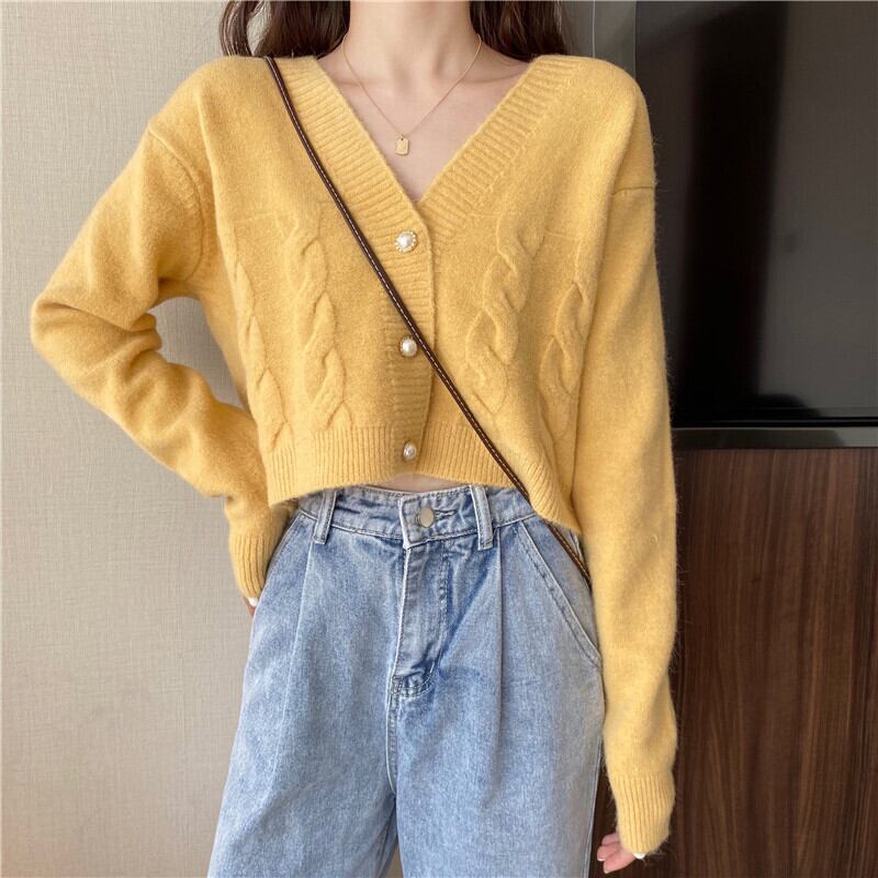 2021 最新作 ハイウエストワイドレッグパンツ、パールツイストVネックニットカーディガン、ルーズセーターコートのbmクロップドトップ 真珠 0136852201074