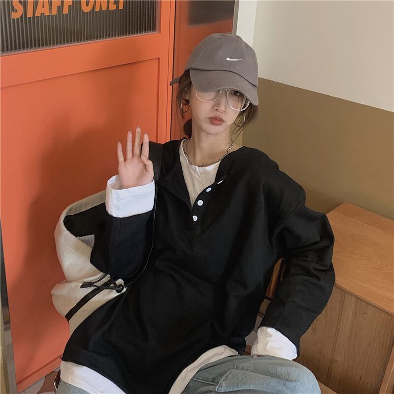 2021 最新作 2021年春の偽のツーピース擦り切れセーターニッチデザインセンスボタンプルオーバー長袖トップ女性の新バージョン ロング スプリング 春物 0181948862964