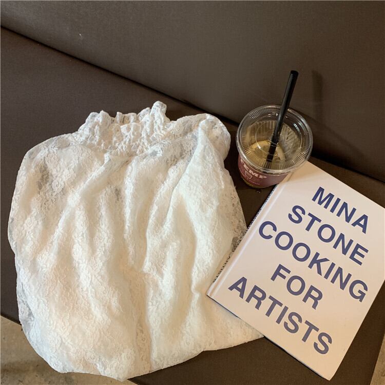 2021 最新作 レースメッシュボトミングシャツ女性の2021年春新しい気質中空薄片ハイカラーホワイト長袖Tシャツ ロング スプリング 春物 0151184545236
