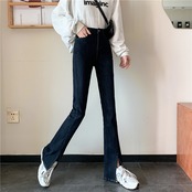 2021 最新作 ウエストスプリットジーンズの女性の2021年の新しい春と秋は薄くてオールマッチの明るい色のストレートマイクロフレアパンツです レッド スプリング 春物 オータム 秋物 013515223980
