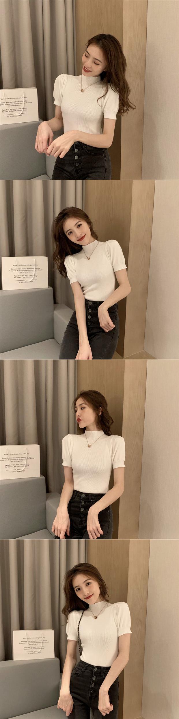 2021 最新作 2021年春新レトロ気質オールマッチセーター夏スリムスリミングパフスリーブトップ半袖Tシャツ ショート ハーフスリーブ スプリング 春物 サマー 夏物 0184955542673