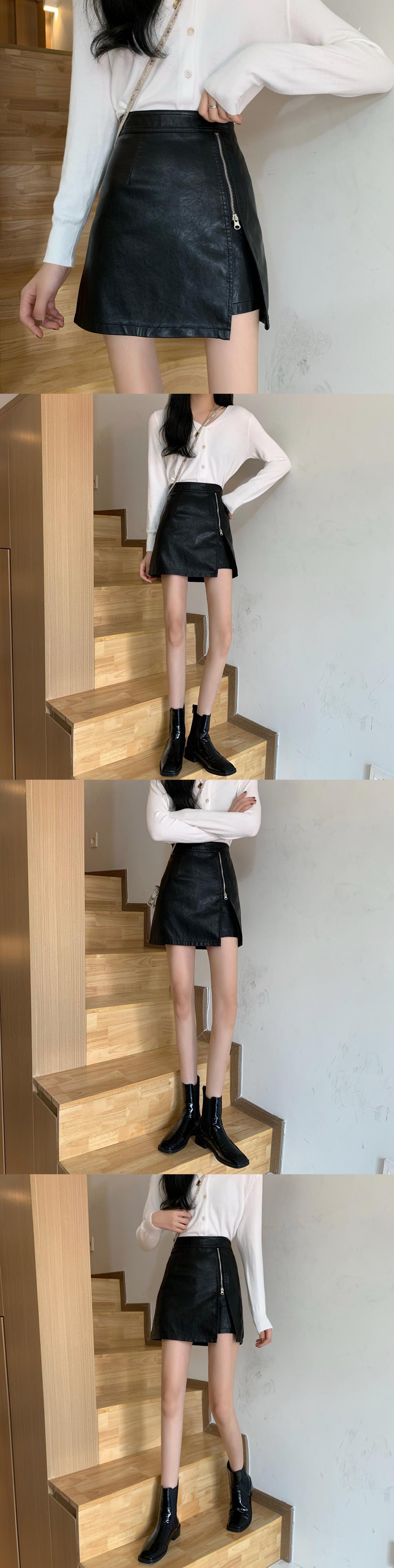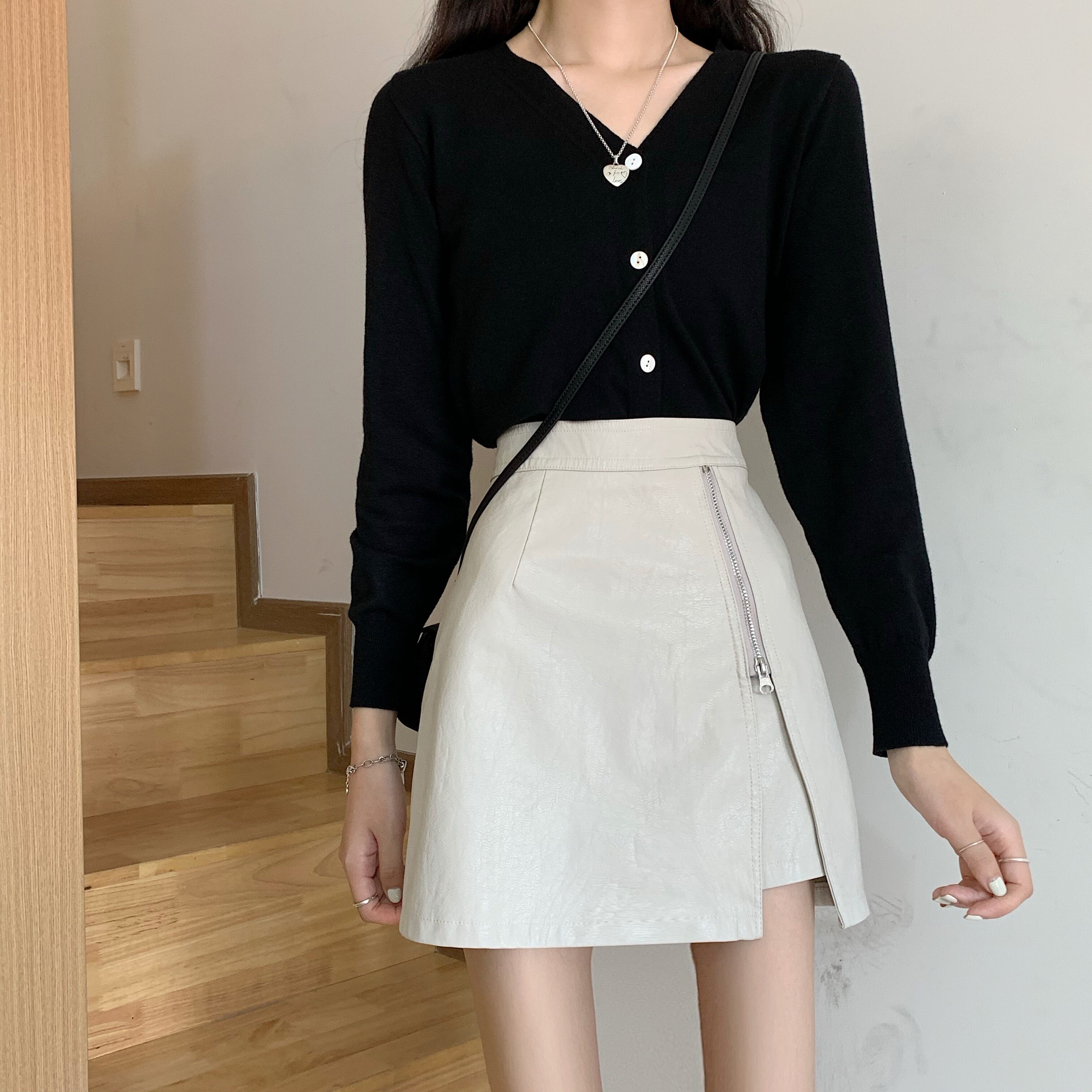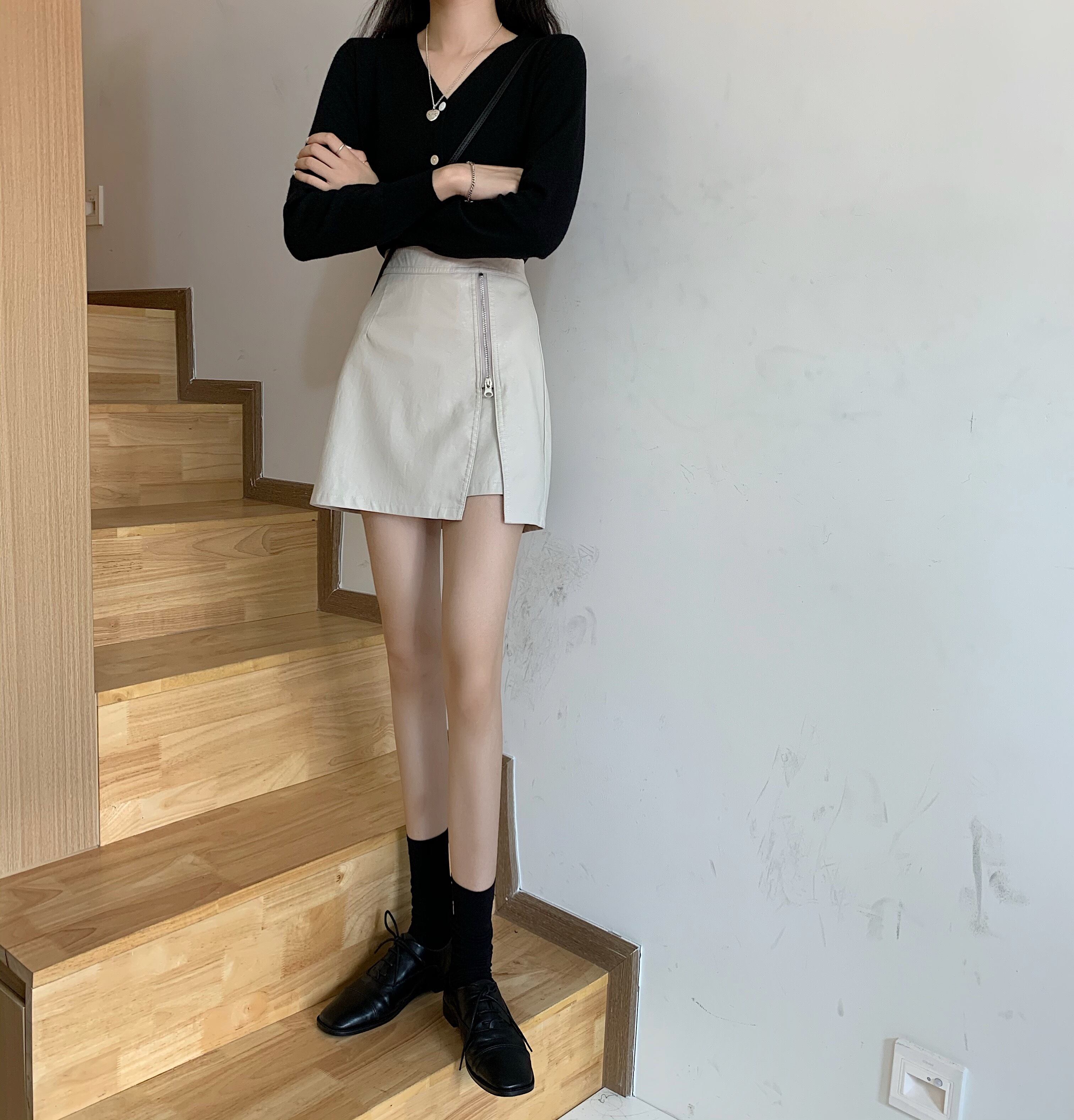 2021 最新作 オールマッチスリムバッグヒップレザースカートブラックショートスカート女性春の不規則なスリットスカートデザインニッチバージョン スプリング 春物 0112151904117