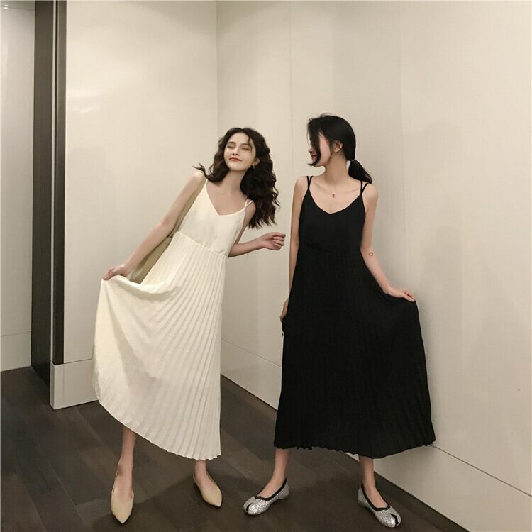 2021 最新作 スリングドレス女性シック2021新しいインナーとアウターウェアVネックベストミドル丈気質プリーツボトムスカート 0149868353974