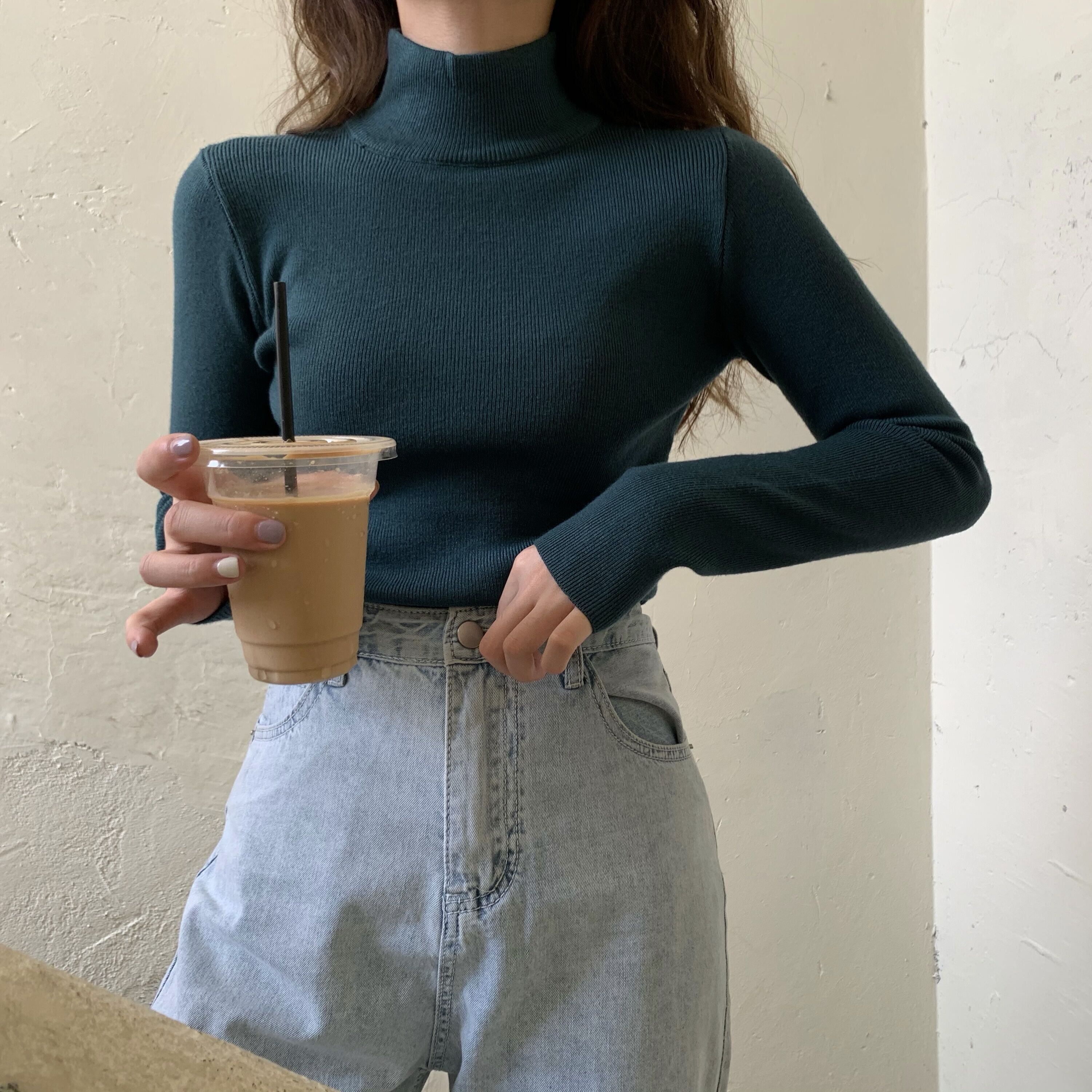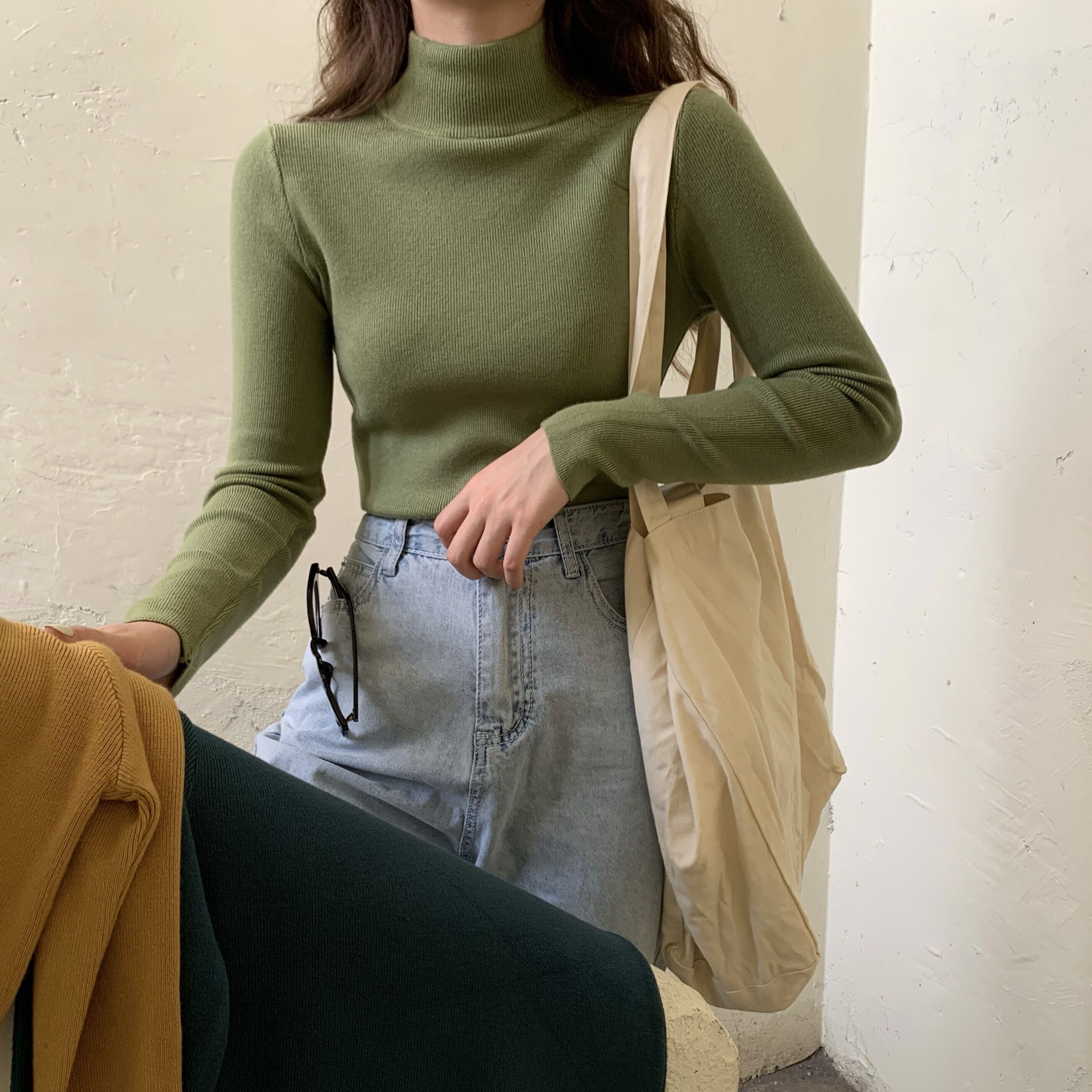 2021 最新作 春のレトロな厚手のプルオーバーセーター長袖タイトフィットダブルレイヤーハーフハイネックニットボトミングシャツトップス女性 ロング スプリング 春物 0145983816170