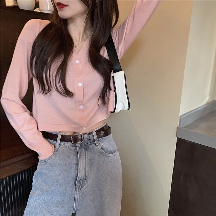 2021 最新作 2021年春新作Vネック長袖パープルカーディガンゆったりとした薄手のアイスシルクニットショートトップ女性 ロング スプリング 春物 0113082446352