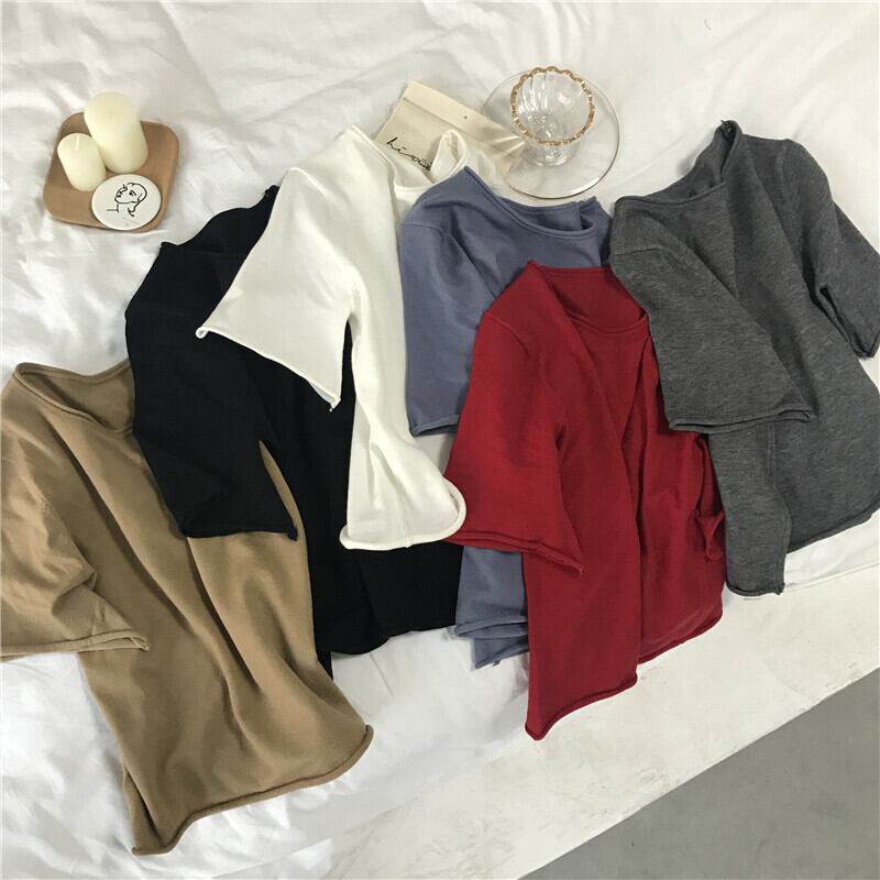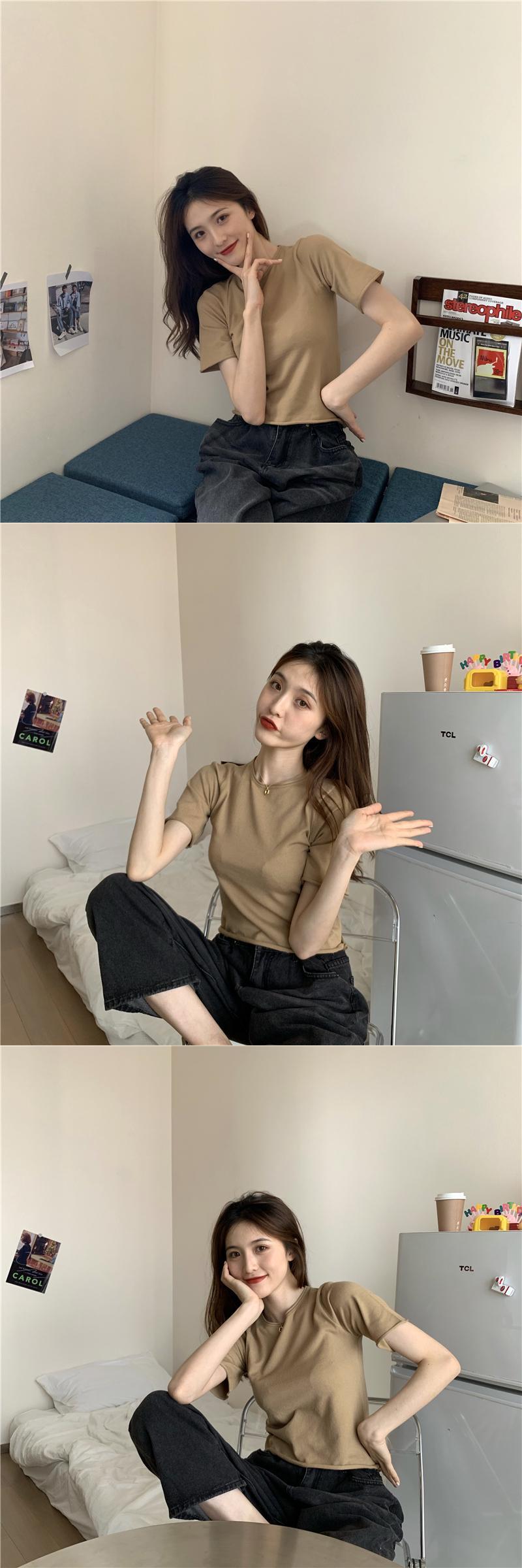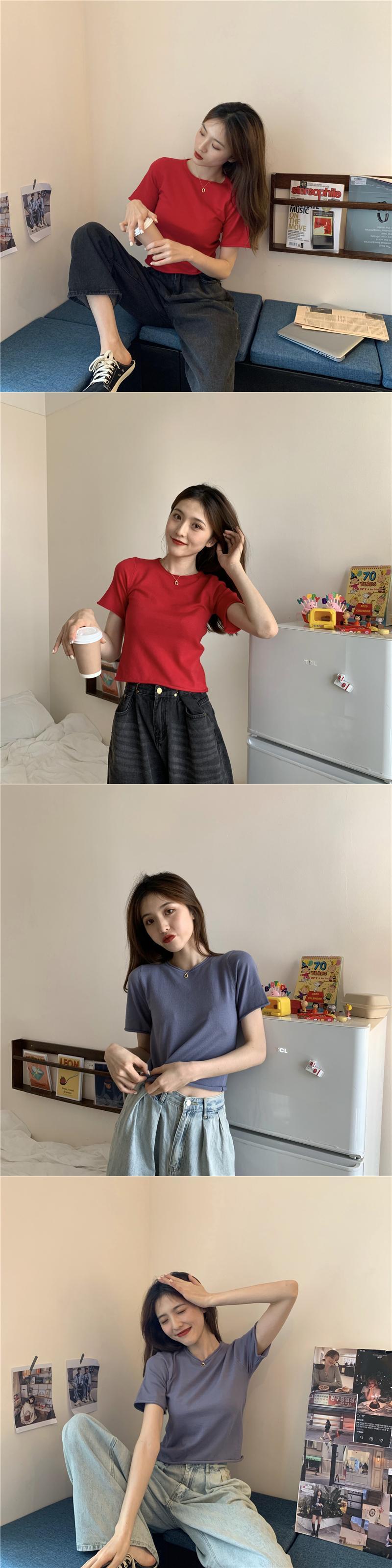 2021 最新作 ホワイト半袖Tシャツレディース2021年新夏フィットハーフスリーブカール無地ニットハイウエストショートトップ サマー 夏物 ソリッドカラー 0148191663294