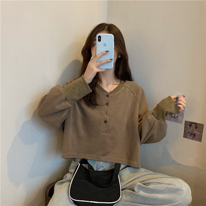 2021 最新作 春シーズンショートセーターレディース2021スモールトール無地ワイルドVネックウエスタンデザインセンスニッチジャケット スプリング 春物 ソリッドカラー 0182606338896