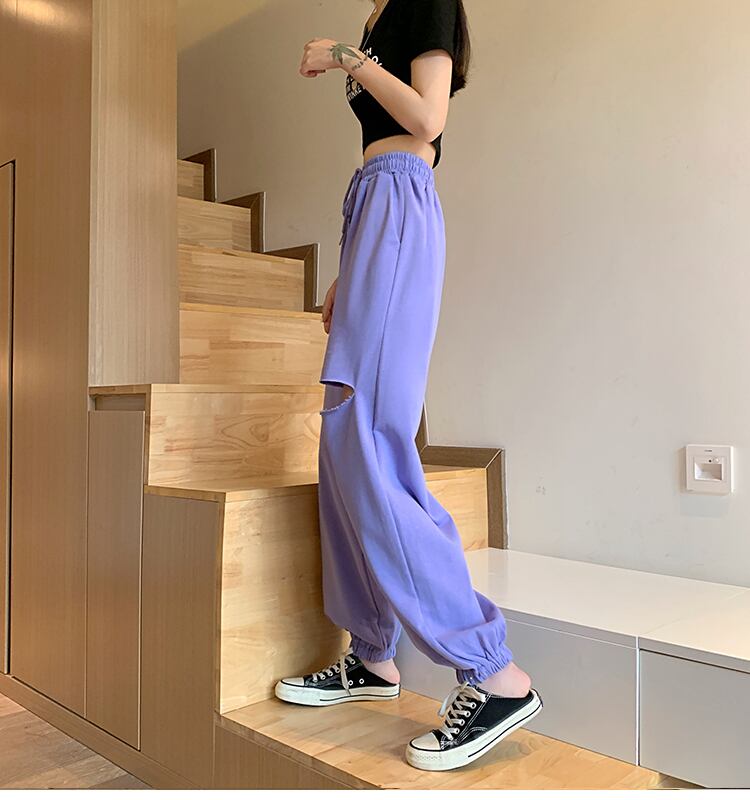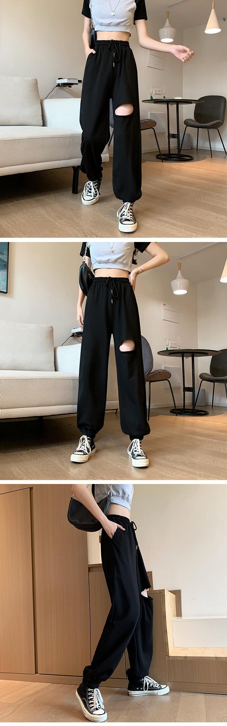 2021 最新作 薄手の破れたグレーのスウェットパンツの女性2021年春夏新しいハイウエストストリートインタイドゆったりとしたカジュアルパンツ スプリング 春物 サマー 夏物 0137258367535