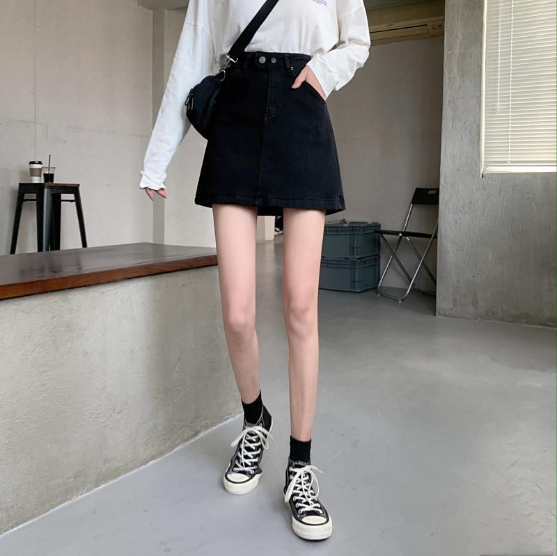 2021 最新作 ブラックスカートデニムスカートハイウエストAラインスカートバッグヒップショートスカート2021年初春新作レディーススカートワンステップスカート ハイウェスト スプリング 春物 0179984117001