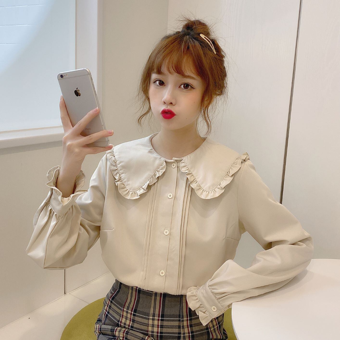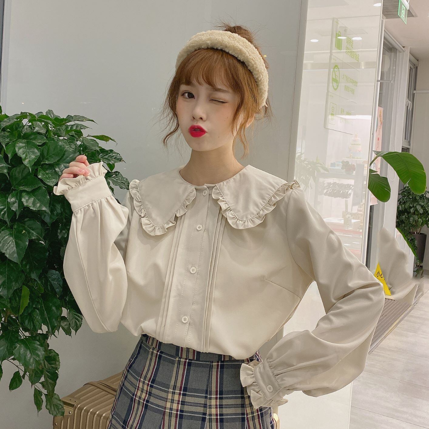 2021 最新作 2021年春の新しいフレンチスウィートドールカラーシャツ女性デザインセンスニッチウエスタンスタイルオールマッチホワイトシャツ 大人ガーリー キュート カジュアル スプリング 春物 0117253650166