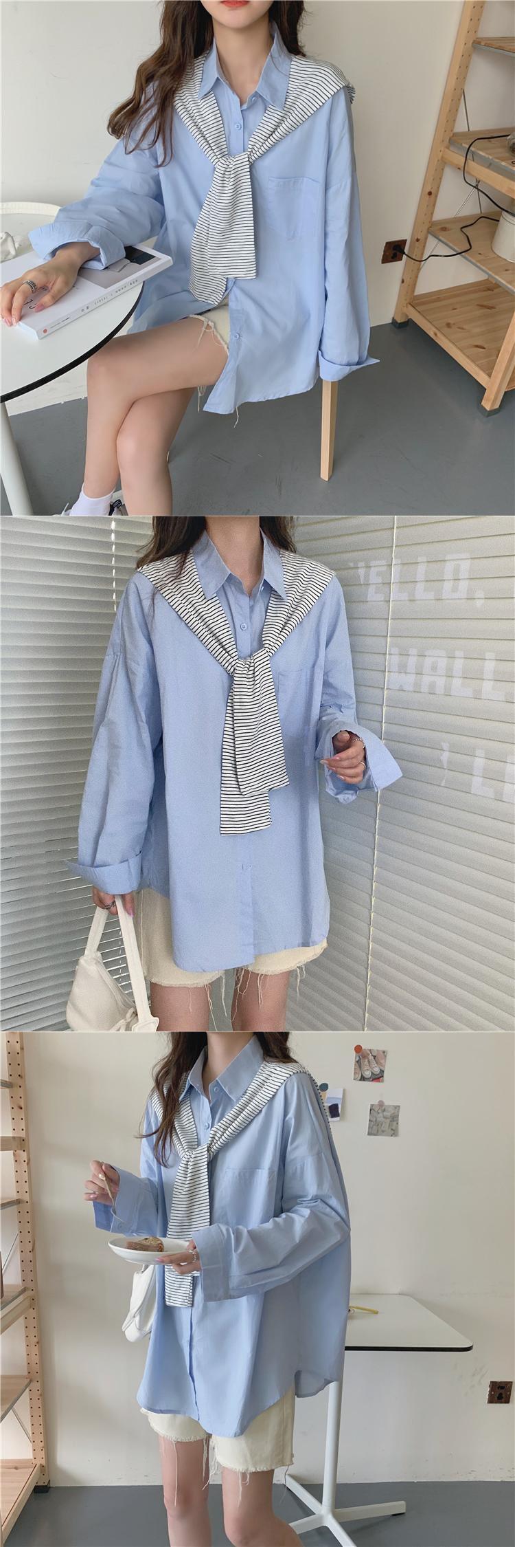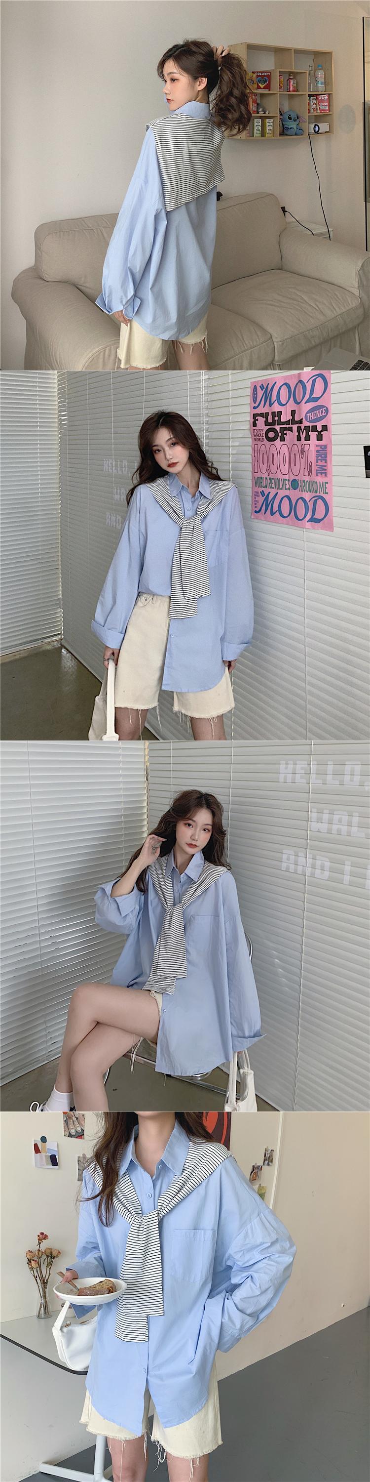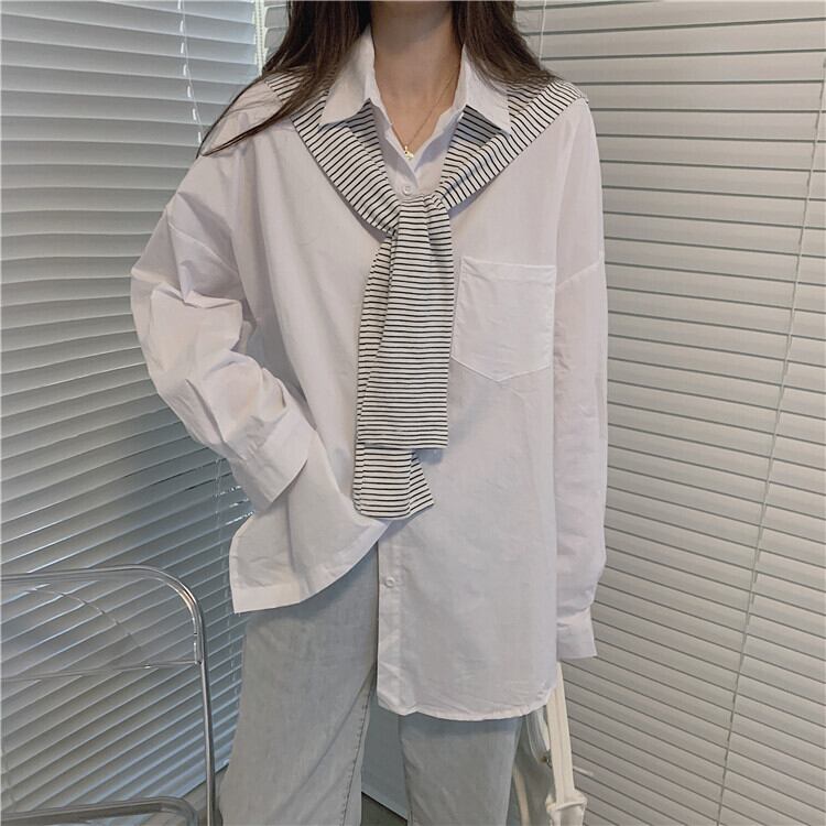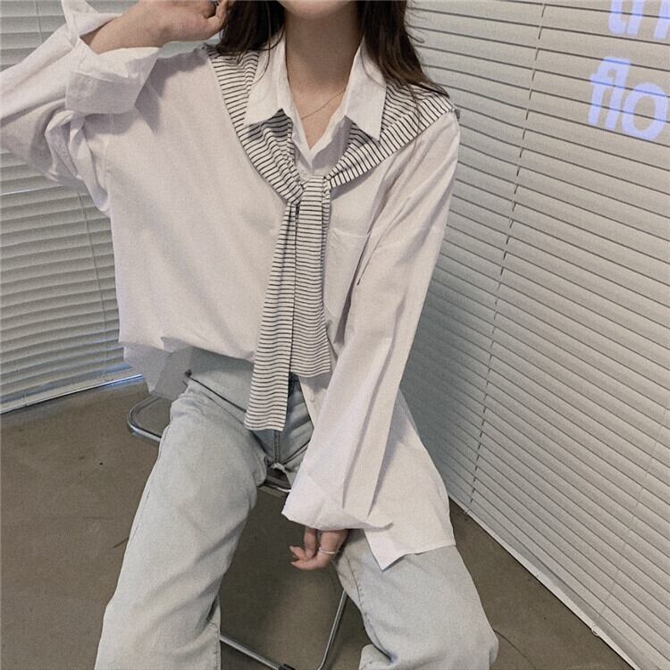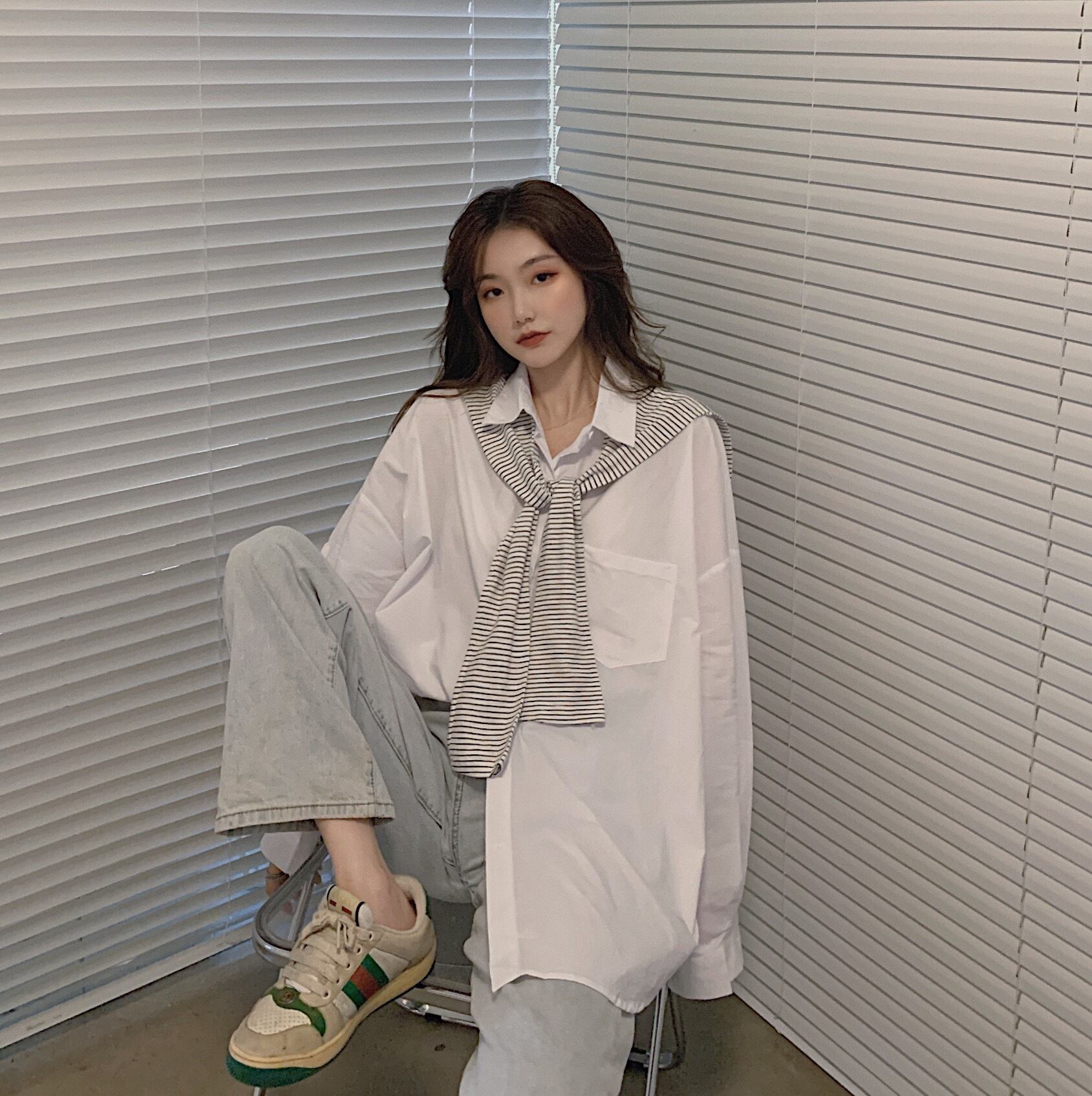 2021 最新作 ホワイトシャツ女性2021年春スタイルデザインニッチスタイルルーズミドル丈BF風長袖シャツトレンド ロング スプリング 春物 0196436290487