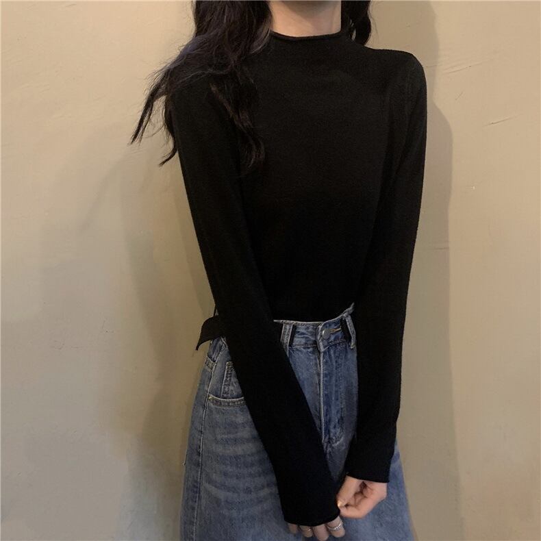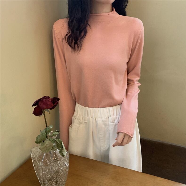 2021 最新作 無地の長袖Tシャツ女性の2021年春の新しいインタイドセミハイカラーボトミングシャツ、スリムカラートップ ロング スプリング 春物 ソリッドカラー 0117903732744
