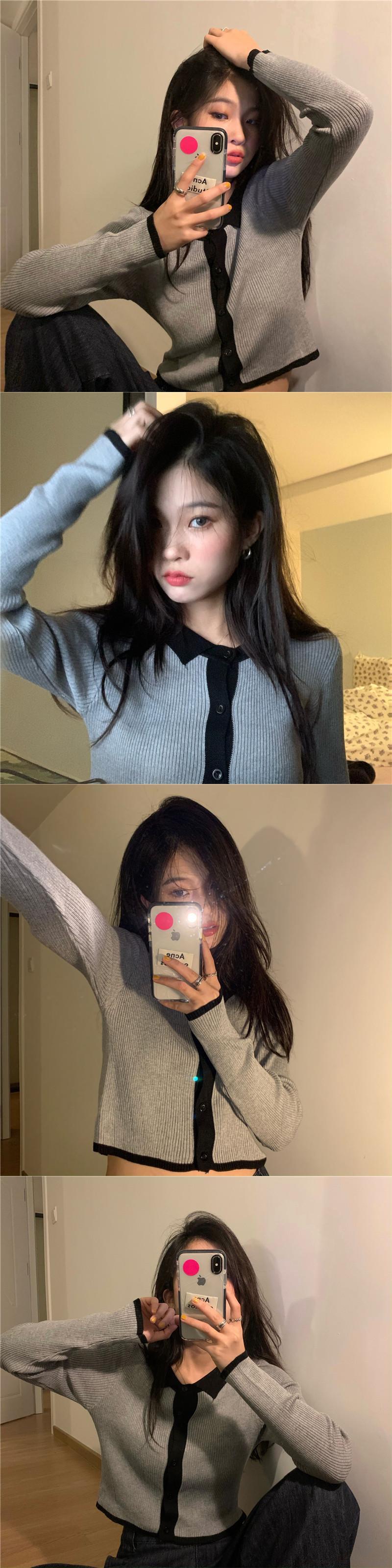 2021 最新作 カラーマッチングニット長袖Tシャツ女性インタイドショートトップハイウエストパンツ春2021新しいbmウィンドカーディガン ハイウェスト ロング スプリング 春物 0145954128350