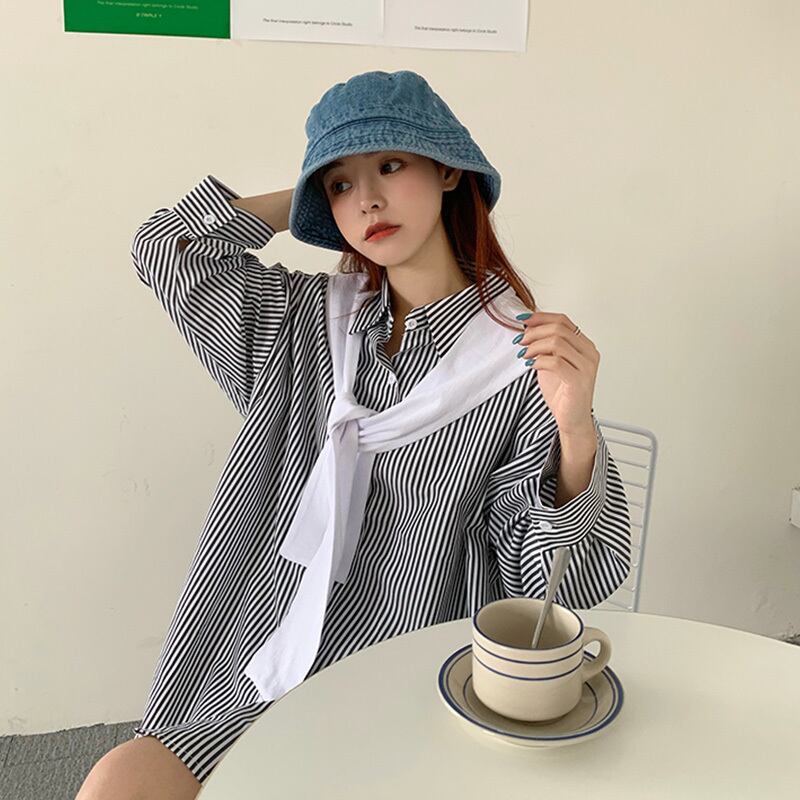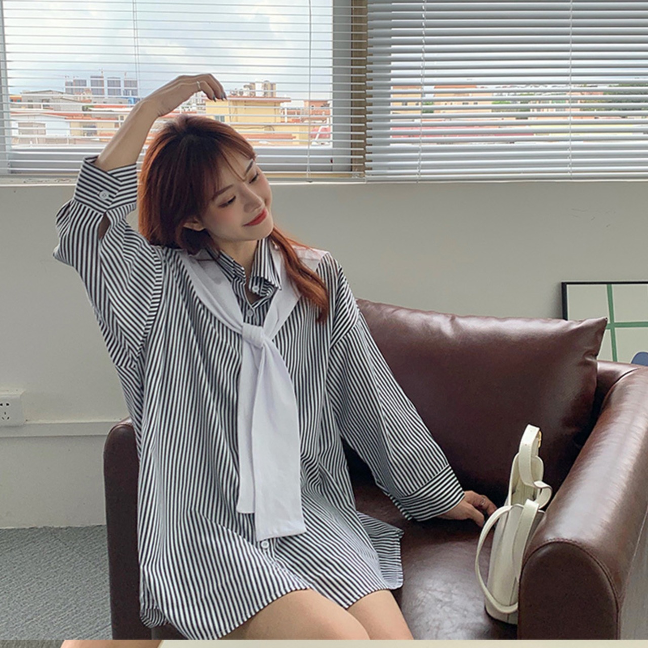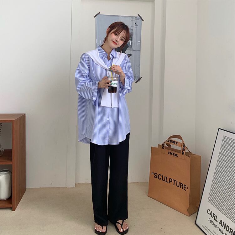 2021 最新作 ストライプシャツショールツーピース女性デザインセンスニッチ春秋モデルオールマッチアウタースタイルトレンディなインチシャツトップス スプリング 春物 オータム 秋物 0162176247218