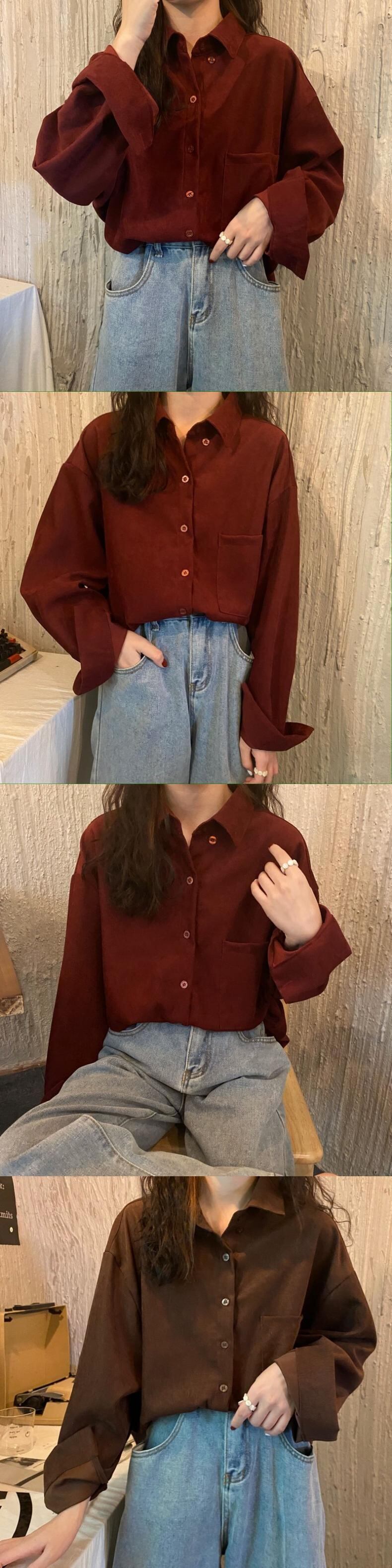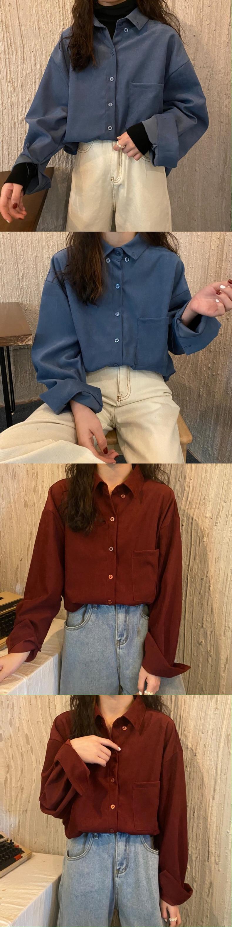 2021 最新作 コーデュロイブラッシュドブルーシャツ女性デザインセンスニッチオールマッチレトロ香港スタイル春と春のスタッキング長袖トップス ロング スプリング 春物 0198660563458