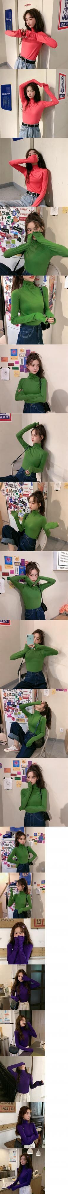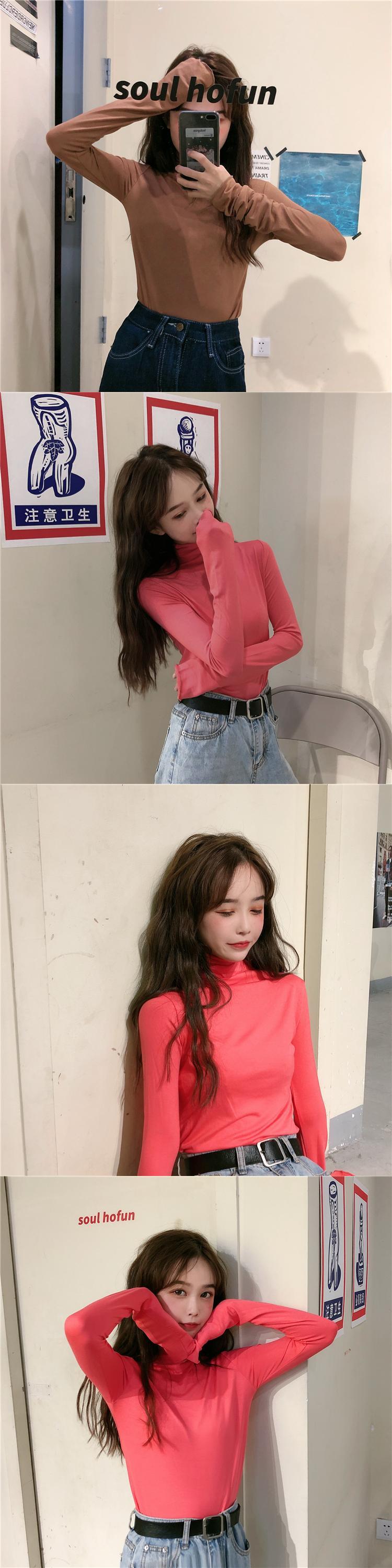 2021 最新作 2021年春秋新作スリムフィットオールマッチトップス、薄底シャツレディースパイルハイカラー長袖Tシャツ ロング スプリング 春物 オータム 秋物 0191795068633