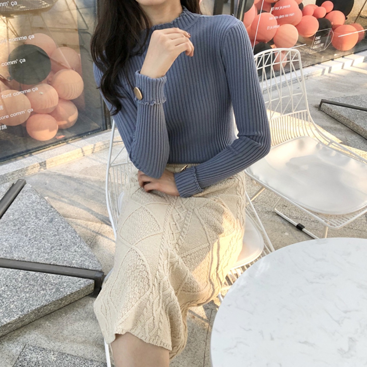 2021 最新作 ソフトミルクホワイトセーター2021新しい女性の春と秋のバージョンとハーフハイネックのタイトフィットボトミングセーター スプリング 春物 オータム 秋物 0186065018390