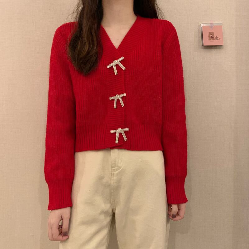2021 最新作 2021年春新作スタイルネットセレブファッション優しい風プライマーショートニットカーディガンVネックセータージャケットレディース スプリング 春物 0167643896649