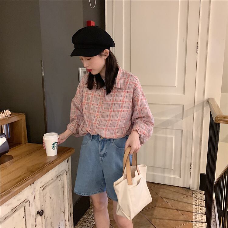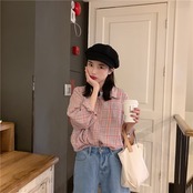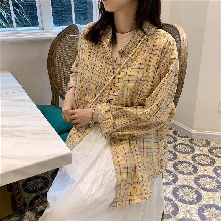2021 最新作 2021年春の新しい非常に妖精のシャツ長袖ジャケットジャケットレトロチェック柄シャツ女性のデザインセンスニッチトレンド ロング スプリング 春物 0117625582102