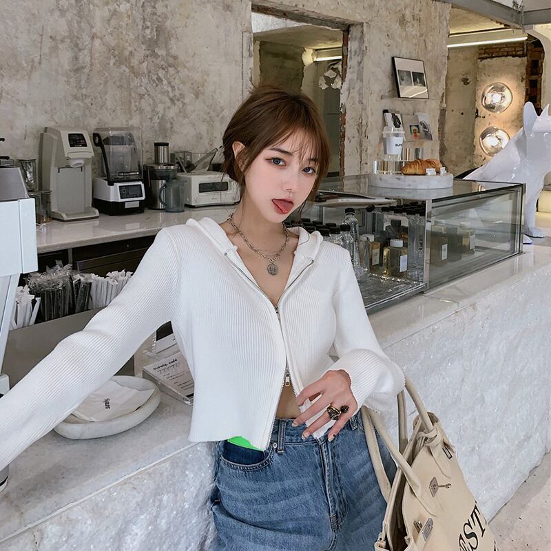 2021 最新作 ショートニットカーディガンレディース2021年春秋新作ダブルジッパーデザインニッチ長袖フード付きジャケットbmトップ ロング スプリング 春物 オータム 秋物 0133457725128