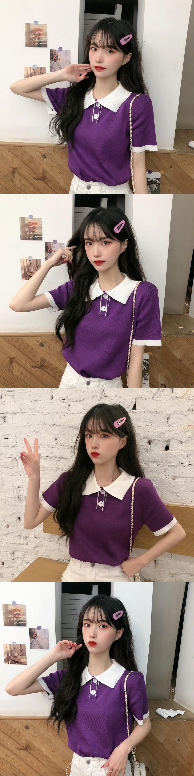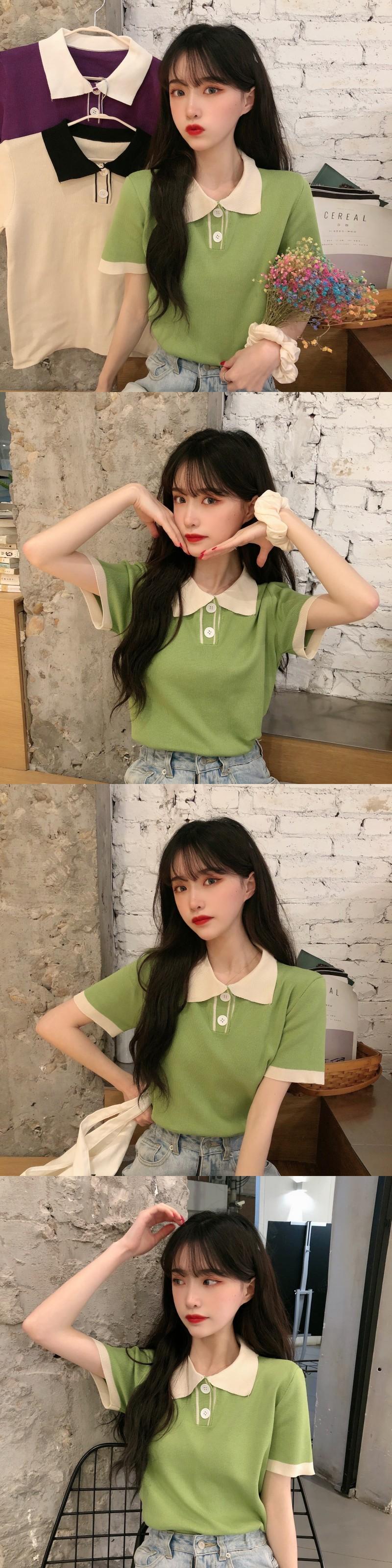 2021 最新作 アボカドグリーンのニットポロシャツトップ女性の2021年夏の新しい甘いeseデザインセンスルーズ半袖Tシャツ 大人ガーリー スウィート キュート カジュアル サマー 夏物 0145518575654