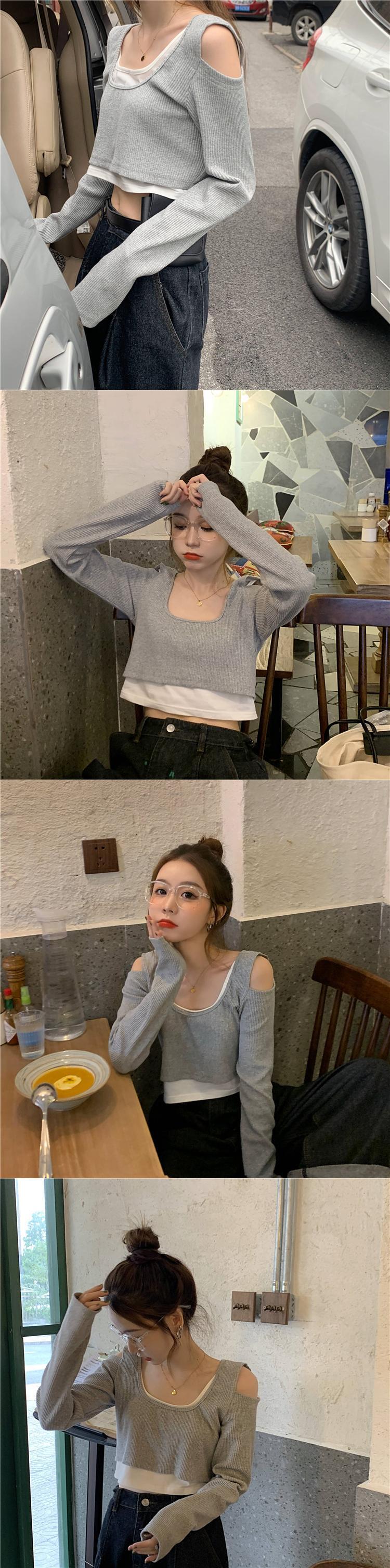 2021 最新作 甘くてかっこいい、露出したへそと偽のツーピースピンクのTシャツが付いた短いbmトップを着用してください。シックなデザインセンスニッチ鎖骨 ショート 大人ガーリー スウィート キュート カジュアル 0171344838393